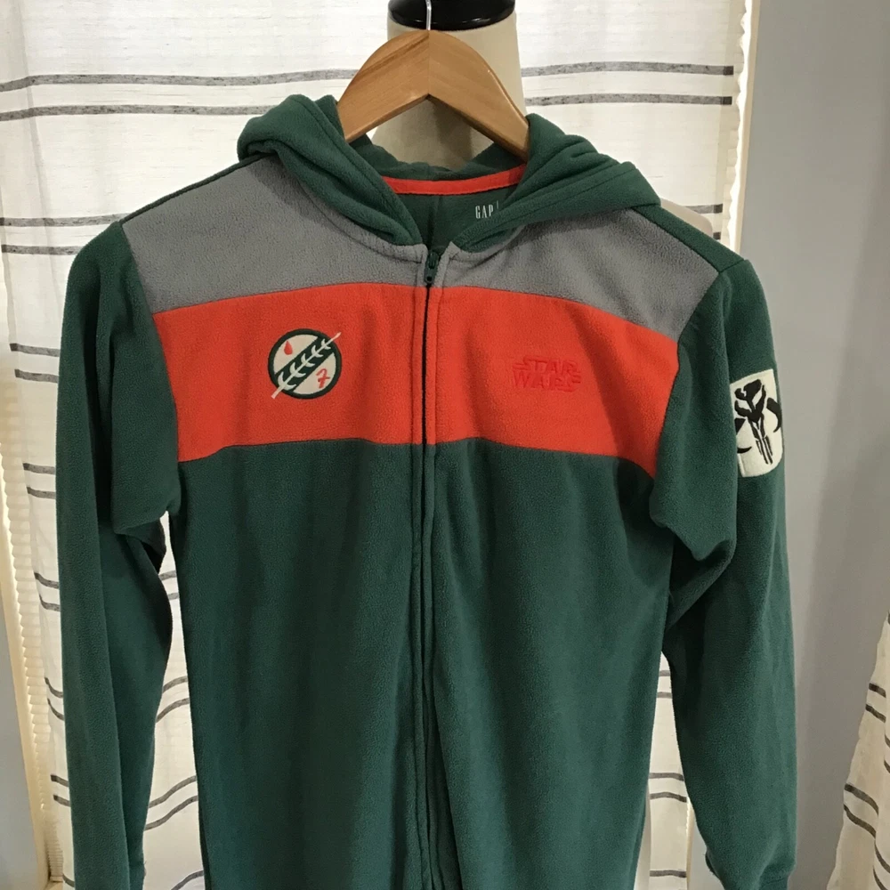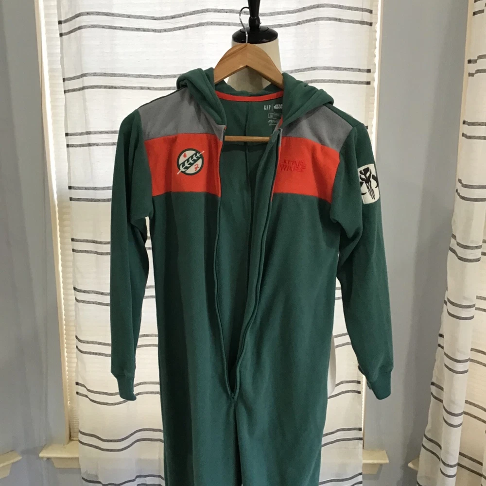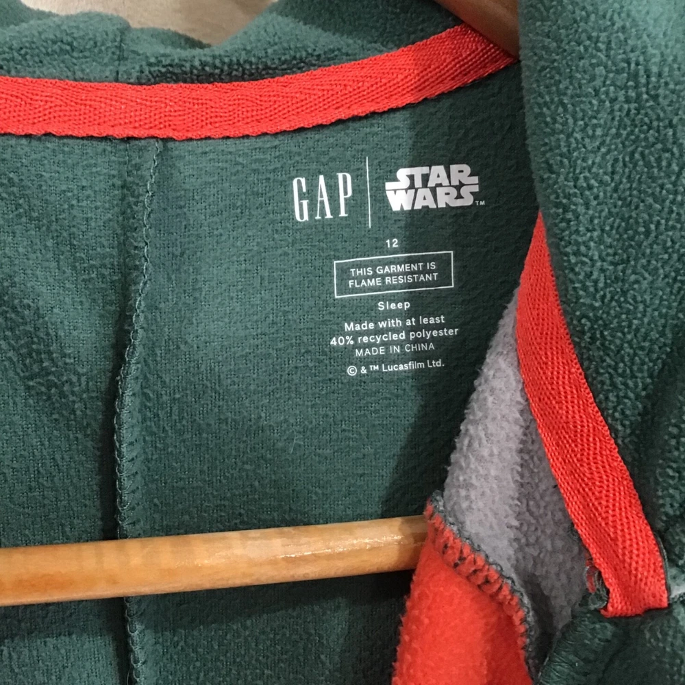 GapKids Unisex Size 12 Star Wars Boba Fett PJ One-Piece Green Cozy Logo
