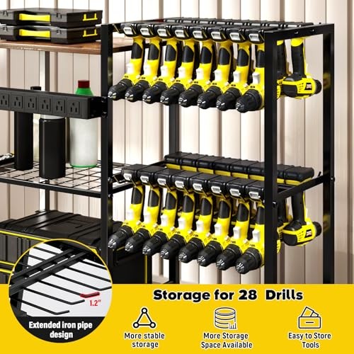 4 Layers Large Power Tool Organizer Wall 8 Drill Holder Black Large 4 Layers