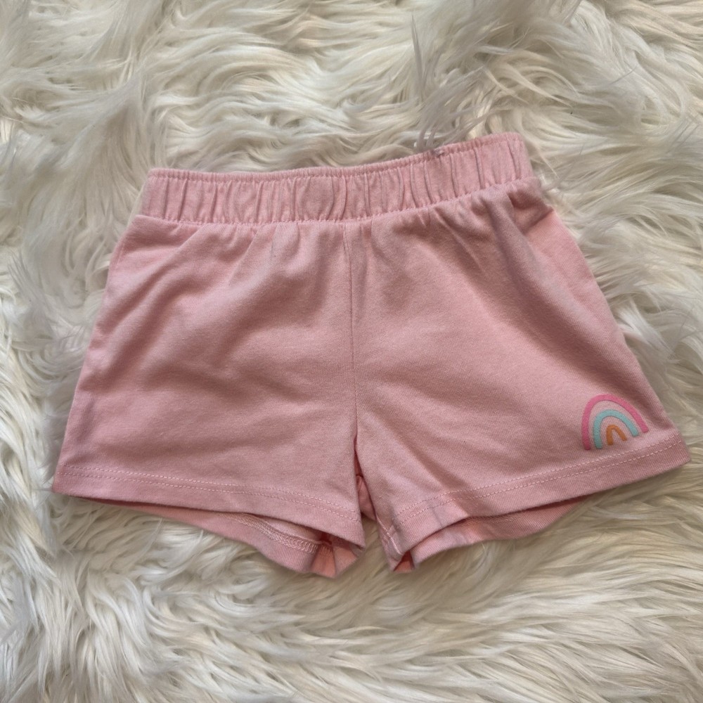 Garanimals Toddler Girl 2 Piece Short Set Size 18 Months Rainbow Print Tee Pink pull on shorts Gently used Smoke & Pet Free Home