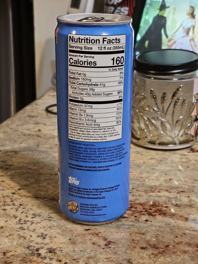 This vintage 2020 Topps Garbage Pail Kids Adam Cherry Bomb OS1 Energy Drink 12 oz is a must-have for any collector or fan of the franchise. The can design is eye-catching and features the iconic Adam Bomb character. The energy drink is perfect for those who need a boost and want to show off their love for the Garbage Pail Kids. The manufacturer, Topps, is known for its high-quality trading cards and this item is no exception. It is a unique addition to any collection and is sure to impress. Don't miss out on the chance to own this rare piece of Garbage Pail Kids merchandise.