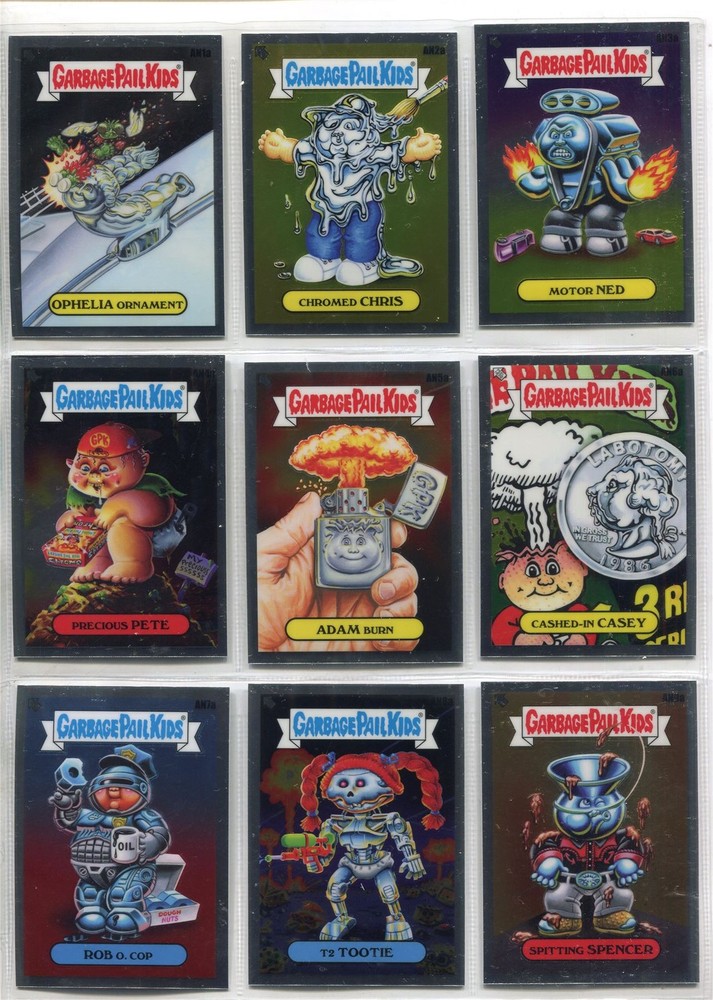 Home FAQ's Feedback Bookmark Us Contact Us Browse our Store Garbage Pail Kids Chrome Series 3 Complete 18 Card New Art Set Description You are bidding on the complete base card set that has been hand collated from packets from the set that is listed and and an EXAMPLE of the set is pictured. The pictures we use are GENERIC pictures and thus are EXAMPLES of the item. All items are sent professionally packed to avoid damage in transit. Postage Costs Internationally we post via International Priority which is internally tracked service by the Postal Carriers worldwide. We also offer the option of International Tracked And Signed service which can be followed online. This is the express option : ******VERY IMPORTANT****** To make use of the combined shipping you must not checkout with individual cards . You MUST add your item to basket and then checkout when you have finished with your order. The correct postage cost will then be applied. Unfortunately failure to do this will result in us sending your orders out individually as we will not be able to combine postage after the order has been placed . Delivery Timescales We post on a daily basis and aim to get you the items you have ordered as quick as possible. We use the Royal Mail for the vast majority of our postage. Within the UK we send via different services but all have the new 2D barcode attached which means in the unlikely event an item goes missing it can be tracked to its last known destination as it is electronically tracked throughout its journey. UK Postage : All items posted within the UK should reach you within 3 days but please wait until 10 working days have passed before contacting us as we cannot raise a query with the Royal Mail until this point. There are sometimes delays but 99.9% of mail does arrive. Rest Of World Postage : Most of the items we post reach our customers within 7-14 working days , but it can take longer particularly at busy times of the year.However mail to certain countries such as South America , South Africa and Mexico can take considerably longer. Please be aware of this if you are purchasing from one of these countries. Please wait at least 30 days before contacting is if you havent received your item as we cannot raise a query with the Royal Mail until this point We Are Buying We are actively looking to purchase collections and we give the best prices for your items. We also accept trade ins against our stock so if you are wanting to trade against something we have please get in touch. We can also sell your items for you so please get in touch with us and we can explain our terms and conditions. Customer Service and Returns We offer a comprehensive returns policy which covers you in the vast majority of instances. We are happy to take a return on anything we sell as long as the item/s are returned to us in the same condition they were sent out in. If you receive an item that is damaged due to postal negligence or an item that isnt as described we will pay the return postage. In the case of mistaken purchases we ask you to pay for the return shipping. Your whole payment will then be refunded. Our customer service team is here to help so please get in contact with us. We can get very busy so please allow up to 48 hours to hear back from us. Our team works Monday to Friday so we cannot reply to emails over the weekend. Please dont think you are being ignored- we will get back to you. Content © Copyright timetosellsurplus. All rights reserved.