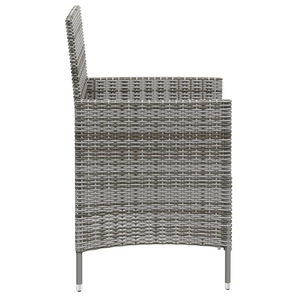Size: Medium This outdoor dining chair set is a mix of style and practicality, featuring a sleek grey poly rattan design and a tough powder-coated steel frame. Perfect for alfresco dining, these chairs keep you comfy while adding modern flair, making any garden, patio, or balcony look great. Durable Material: These tough poly rattan chairs handle the demands of outdoor use while looking sharp. Comfortable Cushions: Each chair is padded with soft cushions made from weather-resistant fabric, so you can relax at your outdoor gatherings. Stylish Design: The modern style of these chairs fits in nicely with any outdoor setup, making them a top choice for upgrading your garden or outdoor dining area. Easy Maintenance: A quick clean with mild soap keeps these chairs looking brand new all summer long. Sturdy Construction: With a strong steel frame and well-designed legs, these chairs stand firm, supporting up to 242.5 lbs, ensuring everyone stays comfy. Number Of Items: 2 Color: Grey Shape: Rectangular Material: Synthetic Poly Rattan Finish: Powder-Coated Indoor/Outdoor: Outdoor Only Cover Included: No Room: Garden and terrace Maximum Number of People: 2 Dimensions: 23.6 x 24.0 x 34.6 in (W x L x H) Leg Height: 16.9 in Weight: 29.06 lbs Seat Depth: 18.5 in Seating Capacity: 1 Swings: No Delivery Contains: 2 x Chair Assembly Required: Yes Recommended Number of People for Assembly: 2