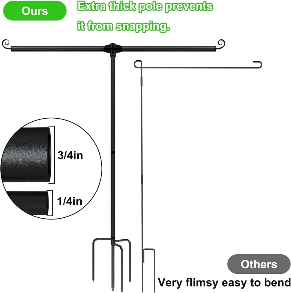 About this item 4 Prong Base & Extra Thick Pole - Our outdoor garden flag stand comes with a 4 prong base, which is more firmly planted in the ground than 2 or 3 Prongs without easily falling down. 3/4" diameter extra thick pole definitely bears more weight, can avoid metal flag stake bending and breaking. Premium Quality - Garden flag holders are made of high-quality aluminum with exquisite surface anodization process. They are weather resistant and steady. 3/4" diameter extra thick pole definitely bears more weight, can avoid metal flag stake bending and breaking. Perfect for Double Flags - This garden flag holder can display two flags at the same time for New Years, Valentine's Day, Easter, Mother's Day, Memorial Day, Flag Day, Father's Day, Independence Day, Labor Day, Halloween, Thanksgiving, Christmas, etc. Tip: Pictured garden flags are from Amazon store "ORTIGIA Home Decor" Easy to Assemble: Comes with screw-in joints for quick installation, each part can be quickly and easily screwed together and securely fastened, and you will get a strong flag stand in about one minute. The anti-wind clips included to keep your favorite flag in place! Let your flag float in the wind and rain, and not messy or fly away! 100% Customer Satisfaction: We truly want you to be happy with your new flag pole, if you have any questions with our products, please do not hesitate to contact us at any time and our professional customer service will do whatever it takes to ensure your satisfaction.