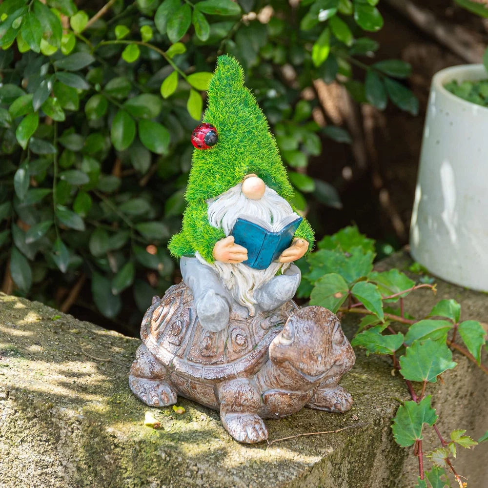 Garden Gnome Sitting on Turtle Outdoor Statues and Sculpture with Solar Lights, Garden Gnome Solar Statues and Turtle Figurines for Patio Yard Lawn Porch Decorations Product Details Color: Turtle Brand: Ovewios MPN: Does not apply UPC: Does not apply EAN: Does not apply Color: Turtle Brand: Ovewios Theme: Shape Material: Resin Style: Garden Color: Turtle Brand: Ovewios Theme: Shape Material: Resin Style: Garden Occasion: Housewarming Product Dimensions: 5.12"D x 7.09"W x 9.25"H Recommended Uses For Product: Garden,Outdoor Mounting Type: Tabletop Cartoon Character: home decor Finish Type: Painted Special Feature: Waterproof Included Components: solar-powered unit Item Weight: 2 Pounds Product Care Instructions: Wipe Clean Collection Name: All Seasons: All Seasons Number of Items: 1 Item Weight: 1.96 pounds Manufacturer: Ovewios Country of Origin: China Date First Available: December 14, 2021 Funny Garden Gnomes Flocked garden gnome on turtle figurine reading a book, add a cute ladybug with solar light on green gnome hat, and this cute garden statue is suitable for yard outdoor decor Exquisite Unique DesignThe cute gnome riding on garden turtle statues are sculptured and painted by skill technicians, and designed with its excellent details and cute shape, make it ideal for housewarming, gardening gifts Garden Outdoor Decorations Made of durable weather-proof resin, coating anti-fading paint to prevent this garden sculpture statues fading in the sun and water, make this turtle decoration for outdoor garden use Easy to UsePut this solar garden gnome in your garden, it can be a funny sight! and the cute ladybug will light up auto when dark. just press the switch to the "ON" position and place garden statue under direct sunlight to charge automatically Ovewios Outdoor StatuesThis gnome is inspired by the Norse tale, and we are committed to design cute and beautiful garden statue for you. If you received our statue with any problems, contact us directly, and we will do our best to solve for you