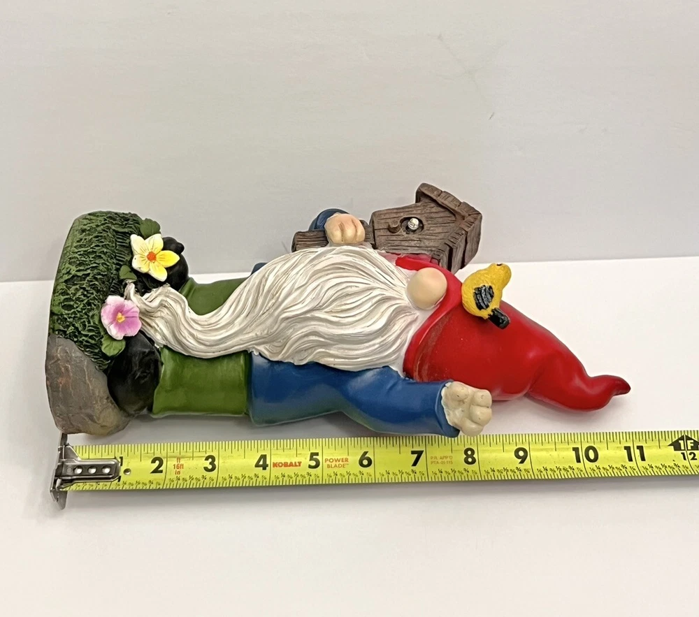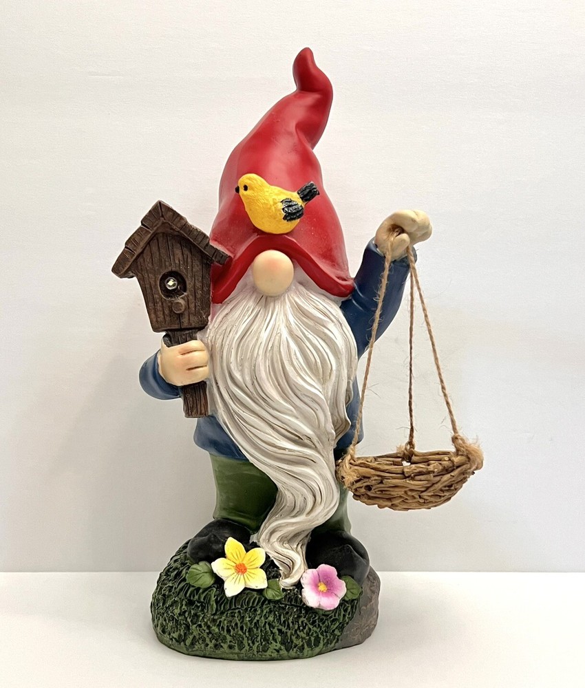 Add a touch of whimsy to your garden with this charming solar-powered Gnome with Basket statue, 3 mini gnomes and 3 garden mini figures With its lifelike and realistic features, this statue is sure to catch the eye of any visitor. The statue is made of a durable and easy-to-care-for combination of plastic, stone powder, and polyresin, making it suitable for both indoor and outdoor use. The medium-sized Gnome statue stands at 11 inches high and features three mini Gnomes figures a set of 7, perfect for garden decor, functional addition to your garden, porch, patio, walkway or any other area you choose to display it. Get this traditional-style Gnome statue with multi-color finish now and add some fun to your garden. Never used listed as used because it does not come with its original box. These are loose figures. Thank you for stopping by!
