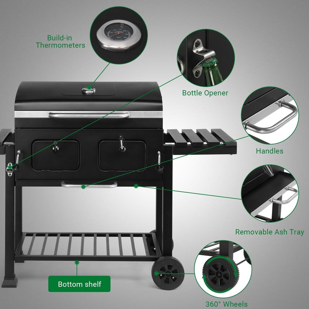 listing template VISIT OUR STORE SIGH UP FOR EMAIL Garden Heavy-Duty Oversize Charcoal Gril Outdoor Liftable BBQ Barbecue Backyard Charcoal Grill Outdoor BBQ Grill, Extra Large Cooking Area with Two Individual & Adjustable Charcoal Doors, Foldable Side Tables for Outdoor Cooking, Backyard, Camping, Picnics Introductions: Take your outdoor cooking experience to the next level with this extra-large charcoal grill. Designed for backyard barbecues, camping, and picnics, this grill offers a spacious cooking area that fits up to 30 burgers at once, making it perfect for family gatherings and parties. Featuring two independently adjustable charcoal trays, you can easily control the heat for different cooking zones. The foldable side tables and bottom shelf provide ample storage, while the two front charcoal access doors allow you to add fuel without disturbing your food. Built with high-quality steel and a high-temperature powder-coated surface, this durable grill is designed for long-lasting performance. Features: 1. Extra-Large Cooking Space: With a spacious grilling area and a warming rack, this charcoal grill accommodates up to 30 burgers at once, making it ideal for hosting large gatherings. 2. Dual Adjustable Charcoal Trays: Two independently liftable charcoal trays allow you to control temperature levels on each side, ensuring precise heat management for different types of food. 3. Convenient Front Charcoal Access: Two individual charcoal access doors let you add fuel without moving food or removing grates. Designed with cooling handles for added safety. 4. Foldable Side Tables & Storage Shelf: Two side tables fold down for space-saving storage, while the bottom shelf provides extra room for charcoal, grilling tools, and accessories. 5. Durable & Easy to Move: Crafted from high-quality steel with a high-temperature powder-coated finish for long-lasting use. Equipped with two sturdy wheels for effortless mobility. Specifications: 1. Color: Black 2. Overall Dimensions: (61.4 x 19.1 x 42.1) in / (156 x 48.5 x 107) cm 3. Folded Dimensions (Side Tables Down): (31.3 x 18 x 39.8) in / (79.5 x 45.8 x 101) cm 4. Single Side Table Dimensions: (15 x 19.3 x 28.5) in / (38 x 49 x 72.5) cm 5. Bottom Shelf Dimensions: (31.1 x 17.5 x 3.9) in / (79 x 44.5 x 10) cm 6. Dual Charcoal Door Dimensions: (25.6 x 16.5) in / (65 x 42) cm 7. Cooking Grate Dimensions (3 Pieces): (16.2 x 9.8) in / (41.2 x 24.8) cm 8. Large Cooking Grate Dimensions (1 Piece): (28.1 x 9.4) in / (71.5 x 24) cm 9. Material: Iron 10. Net Weight: 70.1 lbs / 31.8 kg Package Includes: 1 x Charcoal Grill You might like this more>> Portable Princess Castle Play House Blue Large Kids Play Tent $23.79 Double Shoe Rack Closet Shelf Storage Organizer $19.49 Oil Painting Easel Sketch Box Portable Folding $57.49 FCH L-Shaped Corner Computer Desk Home Office Desk $109.99 10 Tier Durable Storage Organizer 30 Pair Shoe Tower $18.99 24 Slots PU Leather Wrist Watch Box Display Case Organizer $16.99 Shipping Policy 1. Ship from New Jersey by Standard Int'l Shipping, and only to VERIFIED PAYPAL ADDRESS . 2.International Buyers – Please Note: a. Import duties, taxes and charges are not included in the item price or shipping charges. These charges are the buyer’s responsibility. b. Please check with your country’s customs office to determine what these additional costs will be prior to bidding/buying. 3. Please check your shipping address carefully before checkout, it can't be changed if order completed. 4. All items will be shipped to buyer's ebay address. Before you pay, please make sure your address in ebay match the address you would like us to ship to. 5. Ship within 1 business day once payment completed. We do not ship on weekends or public holidays. 6. Item normally will arrive in 10-15 business days but sometimes goes to 25-30 business days for remote area. That is depends on the freight in different countries. Return Policies 1. Refunds given only if item DOA and cannot be replaced via PAYPAL . If so, Please contact us with 5 days since you receive the item and and return to us within 30 days from the delivery date for exchange or refund. 2. If you need return, please contact our customer service representative, let us know the detailed problem and send us some pictures for confirmation. Payment Payment should be sent within 8(EIGHT) days of auction closing. Feedback If you are dissatisfied for any reason, please do not be quick to leave negative/neutral feedback. We work hard to make sure EVERY CUSTOMER 100% SATISFIED and resolve any problem for you. Work Time Work Time: Monday to Saturday About Us | Newsletter| Feedback| Contact Us Copyright © 2021 City-green. All rights reserved. 无标题文档 Garden Heavy-Duty Oversize Charcoal Gril Outdoor Liftable BBQ Barbecue Backyard Charcoal Grill Outdoor BBQ Grill, Extra Large Cooking Area with Two Individual & Adjustable Charcoal Doors, Foldable Side Tables for Outdoor Cooking, Backyard, Camping, Picnics Introductions: Take your outdoor cooking experience to the next level with this extra-large charcoal grill. Designed for backyard barbecues, camping, and picnics, this grill offers a spacious cooking area that fits up to 30 burgers at once, making it perfect for family gatherings and parties. Featuring two independently adjustable charcoal trays, you can easily control the heat for different cooking zones. The foldable side tables and bottom shelf provide ample storage, while the two front charcoal access doors allow you to add fuel without disturbing your food. Built with high-quality steel and a high-temperature powder-coated surface, this durable grill is designed for long-lasting performance. Features: 1. Extra-Large Cooking Space: With a spacious grilling area and a warming rack, this charcoal grill accommodates up to 30 burgers at once, making it ideal for hosting large gatherings. 2. Dual Adjustable Charcoal Trays: Two independently liftable charcoal trays allow you to control temperature