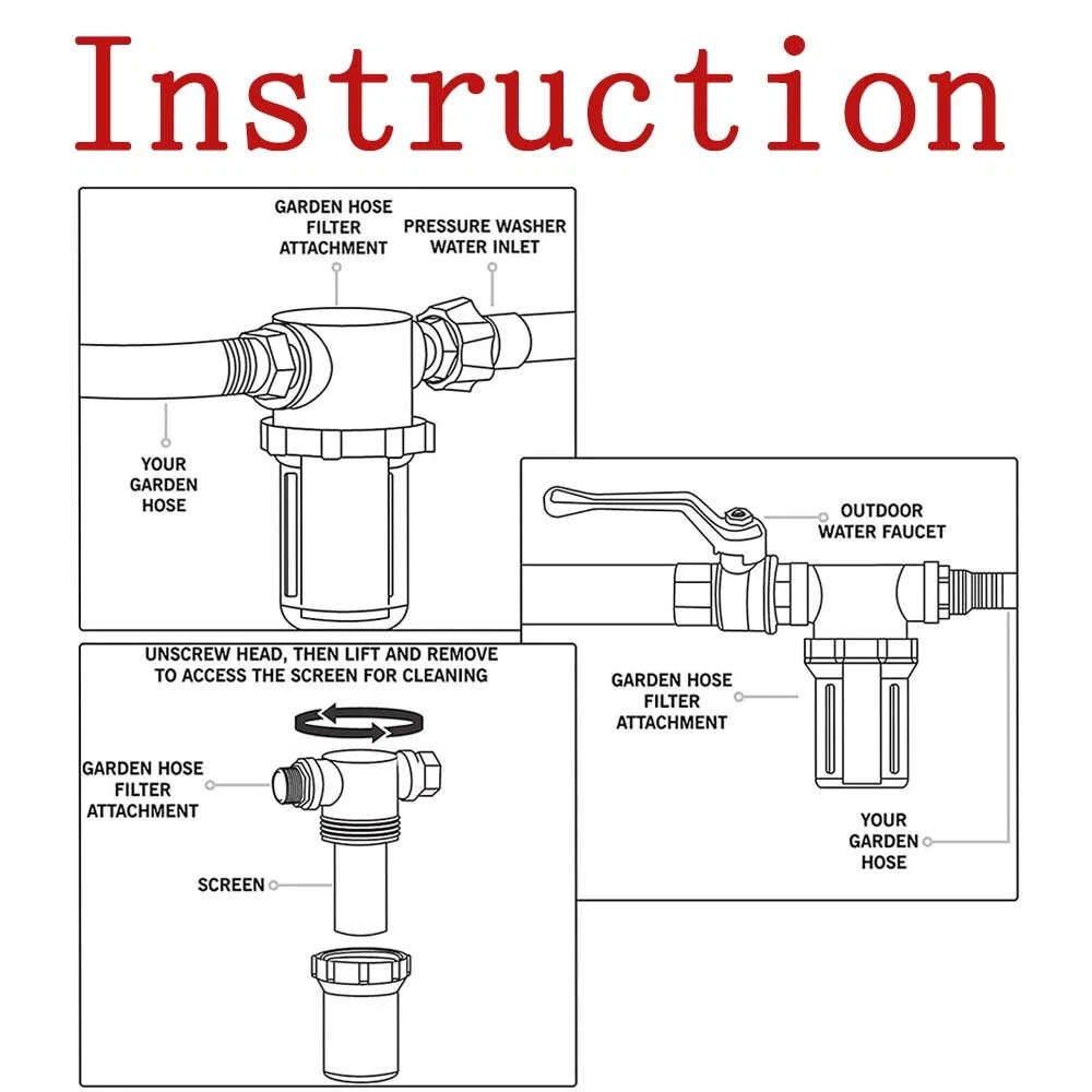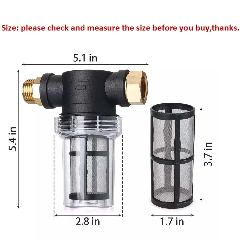 Product Description If there are any problems after you purchased, please message us by ebay firstly, we will help!! Please don't leave neutral or negative feedback or open a return request without any communication. Features: Garden Inline Water Pressure Wash Hose Filter for cleaner and clearer water With 1pc 40 mesh screen cartridge(white), 1pc 100 mesh screen cartridge(Black), 3pcs filter gaskets with screens and 2pcs rubber gaskets. For outdoor gardening use and protect your pressure washer pump. Easy to install Specification: 100% BrandNew Material: Plastic + Metel Color: As pictures shown Size: 13.7*13*7.2cm / 5.4*5.1*2.8in Filter Screen Cartridge Size (Diam.*L): 4.2*9.3cm / 1.7*3.7in It has 3/4 inch GHT male and female thread. Max working for garden hose is 80 PSI. Package Included: 1 X Hose Filter 1 X 40 Mesh Screen 1 X 100 Mesh Screen 2 X Rubber Gaskets Some installation methods are for reference only!! How to install about this: 1. Check the Mesh Screen and Clear Container are well assembled. 2. Connect the 3/4’’ male connector and 3/4’’ female connector to the garden hose or the inlet water of pressure washer pump. If leakage at connection, please use Teflon Tape at the male thread. Hope you can understanding this. 3. Start pressure washer or garden hose. How to Replace Mesh Screen 1. Unscrew Clear Container and take out old Mesh Screen. 2. Put new Mesh Screen into the Clear Container and fix it. 3. Screw the Clear Container into the Black Body of the filter. 4. If you connect new Mesh Screen to the Black Body first and then connect Clear Container to Black Body, there will be a gap at the connection of Clear Container and Black Body. It will lead to leakage, Hope you can understanding this. Shipping Returns Payment Contact US All items will be shipped in 48 hours after receiving your payment . We ship this item to US only via USPS/UPS/Fedex,etc. It usually takes 3-6 working days to deliver. Many factors may cause package delays, such as location, weather, and the products in the order. We hope you can understand. If you have any questions, please send us an email and we will handle it for you as soon as possible. Thank you. International package usually takes about 7-18 working days to reach you. Please wait paitently,thanks We only ship to confirmed Ebay addresses. Your Ebay address MUST MATCH your Shipping address ▲▲▲ Please contact us first before you sent a return request ▲▲▲ Any problems you meet, we will help to solve it,We will ensure that customers do not suffer losses, please don't worry.Trust us!!! 1) No NEED TO RETURN . If you received an incorrect, damaged, defective, or item not as described, Just Contact us directly by ebay messages,send us the photos, videos, we will give you the partial or full refund or replacement on our cost. 2) If you sent a return request ,please selete the reason for return: Changed my mind/Just didn't like it/Order by mistake .Thanks for your cooperation. Return products must also be in its original condition: including box, packaging and all other accessories. Please email us your return tracking number too,thanks. 1.We accept PayPal, MasterCard, Visa, American Express, Discover and etc payment. 2.Payment is expected within 7 days of auction close. Unpaid Items will be forfeited per eBay . 3.Immediate payment needs to be processed for items. 4. Please Note: The buyer is responsible for any applicable import duties and local taxes. Our Working Time: (GMT+8)Monday to Friday,9:00am-18:00pm. For inquires and customer support, please send your emails via ebay email system. All emails will be responded to within 24 hours during working days. Weekends Time will be responded to within 24-48 hours . Please be patient and give us some time, we will solve your problem ASAP. You can also send photos or videos for us to quickly answer your questions. Thank you very much,and thanks for your understanding. We appreciate your business and strived to improve our customer service and our commitment to quality. We will leave a 5-star positive feedback immediately after payment is received. We appreciate a 5-star positive feedback as much as you do.It is very important for us. Please DO NOT give us a neutral or negative review. We are a growing small store and we will do our best to improve every thing. Please give us a chance. Really!!! Appreciated!! NEED YOUR SUPPORT!!! Shipping All items will be shipped in 48 hours after receiving your payment . We ship this item to US only via USPS/UPS/Fedex,etc. It usually takes 3-6 working days to deliver. Many factors may cause package delays, such as location, weather, and the products in the order. We hope you can understand. If you have any questions, please send us an email and we will handle it for you as soon as possible. Thank you. International package usually takes about 7-18 working days to reach you. Please wait paitently,thanks We only ship to confirmed Ebay addresses. Your Ebay address MUST MATCH your Shipping address Returns ▲▲▲ Please contact us first before you sent a return request ▲▲▲ Any problems you meet, we will help to solve it,We will ensure that customers do not suffer losses, please don't worry.Trust us!!! 1) No NEED TO RETURN . If you received an incorrect, damaged, defective, or item not as described, Just Contact us directly by ebay messages,send us the photos, videos, we will give you the partial or full refund or replacement on our cost. 2) If you sent a return request ,please selete the reason for return: Changed my mind/Just didn't like it/Order by mistake .Thanks for your cooperation. Return products must also be in its original condition: including box, packaging and all other accessories. Please email us your return tracking number too,thanks. Payment 1.We accept PayPal, MasterCard, Visa, American Express, Discover and etc payment. 2.Payment is expected within 7 days of auction close. Unpaid Items will be forfeited per eBay . 3.Immediate payment nee
