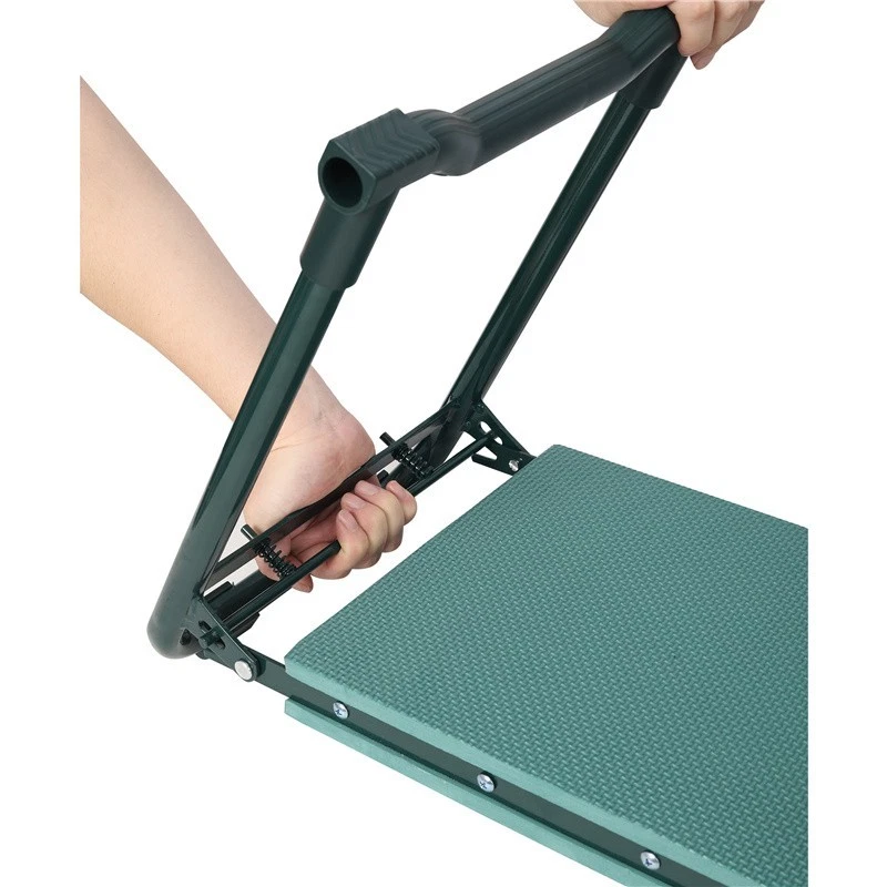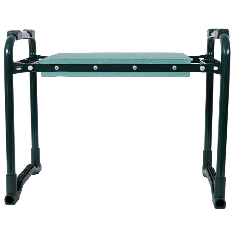 Features and Details: Designed to turn tedious gardening tasks into comfortable, back-friendly experiences, our garden kneeling bench stands out with its thoughtful features,starting with a generous 10-inch wide seat that delivers exceptional comfort and support for users. It provides ample room to shift positions without feeling cramped, making it ideal for those who prefer a more stable, spacious base. Crafted to withstand the rigors of outdoor use while delivering long-lasting reliability, our garden chair features a heavy-duty steel frame that serves as its unshakable foundation. Complementing this robust frame is an impressive load-bearing capacity of nearly 330 pounds (150kg)—a specification that goes far beyond basic outdoor seating needs, offering unmatched stability and peace of mind for every user. Our garden kneeler and seat arrives 100% ready to use, with zero assembly required. As soon as you unbox it, you can pull it open and start using it right away: no tools, no time wasted, no head-scratching over how parts fit. This hassle-free design is a game-changer for busy gardeners, seniors, or anyone who wants to jump straight into tending to their plants instead of fighting with assembly. Take the hassle out of gardening organization with the removable tool bag set included with our kneeling stool—a thoughtful addition that turns your seating solution into a portable, all-in-one gardening station. This set features three purpose-built storage options: 1 large-capacity main tool bag and 2 roomy detachable tool bags—each designed to keep your gear secure, sorted, and instantly within reach, so you never waste time rummaging through garage boxes or patio bins mid-task. Specification: Color: Green Material: Iron Product Dimensions: 21.2"L×11.8"W × 16"H Item Weight (lbs.): 7.3 lb