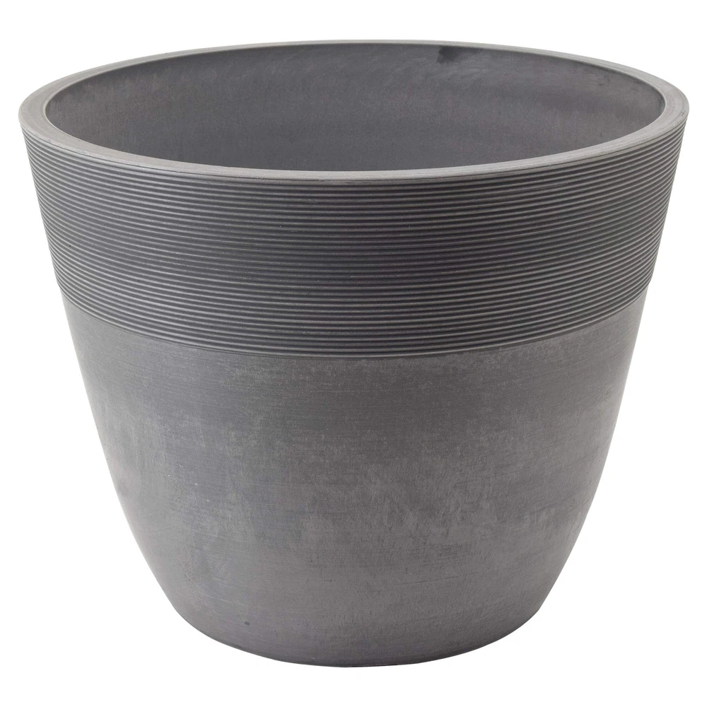 Part of our award-winning PSW Pot Collection, the Etched Pot from Garden Products is made from a mix of recycled plastic, stone , and wood dust. This smart-looking container is ideal for planting combination gardens that provide adequate space for descending roots. The height works well for those plants that will drape and grow over the pot’s edge. Both indoor and outdoor use are popular with this deep pot. For outside use where drainage is likely to be necessary, the bottom of the pot indicates the ideal area for optional drilling. The winning combination of recycled ingredients in the PSW line makes this an attractive, eco-friendly product that is also weather resistant and easy to clean. Available in colors and three sizes, the container features elegant etched ridges around the top portion of the pot. The sturdiness of this etched pot is admirable, and its significant feel and look make it a thoughtful gift for those who enjoy plants and planting. Because it coordinates with other PSW co LIGHTWEIGHT & DURABLE: Answering a gardener’s wish, this PSW item looks heavy but is lightweight and sturdy, which means it’s easy to move and reposition on a patio or in a garden. RECYCLED MATERIALS: A blend of recycled plastic, stone and wood dust is inventively used to create this substantial-feeling etched pot. PSW products are both attractive and eco-friendly. ORIGINAL: The unique appearance of each PSW product is -of-a-kind due to the blending of recycled materials. The slight variations infer an artisan’s touch, making these moderately deep planters appealing and functional. WEATHER RESISTANT: Through snow, sleet, rain or heat – this item can withstand extremes. UV rays won’t fade this item so count on it to be long-lasting. PSW etched pots are for use indoors and outside. DRAINAGE OPTIONAL: Optimal locations for drilling are indicated on the bottom of the pot, enabling this planter to be an ideal choice for enjoyment both indoor and outdoor. VARIETY: Having choices makes a difference when creating a certain look in your garden or sunroom. PSW products are available in a variety of sizes and colors to complement your existing gardenscape or to create a new porch or patio look.