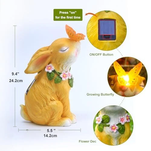 Menu 1. We require immediate payment. 2. We currently accept payment via eBay managed payments only. 3. Once payment is cleared, we will dispatch your shipment within 1-3 business days. Please refer to the "Shipping" tab for more information regarding shipping speed to your destination. Garden Solar Outdoor Statues Rabbit Garden Statue Bunny Outdoor Figurine Lights with Butterfly Clearance for Patio, Balcony, Yard, Lawn Ornament (Yellow) Product description 【Beautiful Home and Garden Decoration】The solar rabbit decor statues with butterfly suitable for garden decor/home decor/house decor/lawn ornaments/front porch decor/yard decorations outdoor/back decor/backyard decor. 【Unique garden decoration】On a quiet night, a lovely rabbit statue will help to light up your yard and room. The lovely rabbit statue in the garden hides among the glowing flowers. Romantic and warm scenes make your garden full of unique fun. It is even like a night light, illuminating your heart and making you happy. 【Easy to Use】Simply turn the statues ON and leave it in the “ON” position during the daytime. The solar panel will charge during the daylight hours and light up automatically at night. The LED will fully charged within 6-8 hours and will light up for 8-10 hours. 【Professional After-Sales Service】Please feel free to contact with us if you have any problems about the Solar Dog Statue. We will provide you with satisfactory after-sale service. We also provide 90 days replacement OR risk-free refund warranty. Perfect Size】Perfect Size: - This solar turtle statue for garden at a full 24cm Wide and 12cm High makes an impression wver you put him - on the balcony, patio, in the yard, on the lawn or even on a wide window sill and house decor PLEASE MESSAGE US IF YOU HAVE ANY OTHER QUESTIONS, AND MANY THANKS FOR READING ALL OF THIS. Copyright ©#. All Rights Reserved.