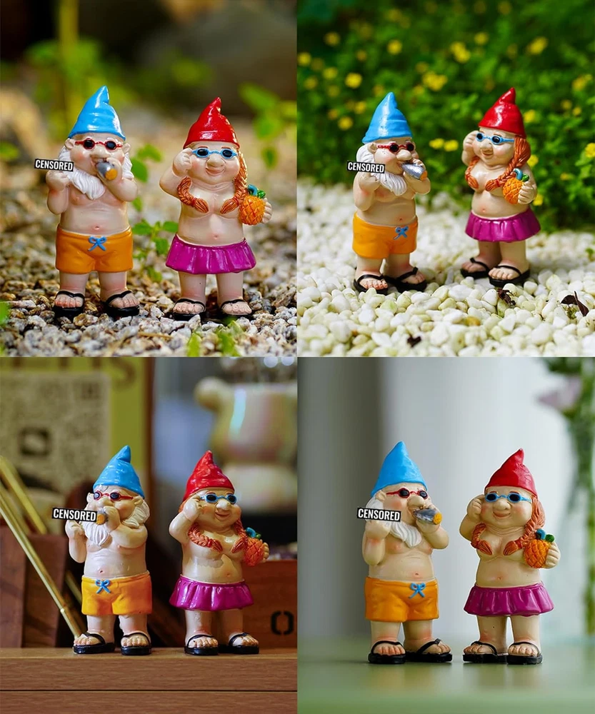Garden Statues Funny Gnome Figurine- Outdoor Ornaments Sculptures for Lawn Patio Yard Art Decorations 2 Pack Product Details Package Dimensions: 5.79 x 4.96 x 3.54 inches Item Weight: 9.9 ounces Manufacturer: Kodylife Home Country of Origin: China Item model number: Gnome Statue 2Pack Exquisite Home Garden Decor:The pair of Gnome Statues can be used to decorate your garden;patio,etc. and can also be used to decorate your beautiful home. It can be given to lovers;husbands;wives;mothers;fathers;sons;daughters,etc Intricate Details:This New Creative the two Funny Gnome in meditative Position are sure to make your yard look alive! This exquisitely designed garden statue will bring warmth and comfort to the heart.Display the statue outdoor figurine where guests can easily see it—on your patio;garden or porch Perfect Size:The size of the male’s figurine is 1.89x1.77x4.33 inches and the size of female’s figurine is 2.17x1.57x4.33 inches wherever you put him - on the balcony;patio;in the yard;on the lawn or even on a wide window sill High Quality:Hand made by durable poly resin and stone powder construction,our Gnome is rust,weather and UV resistant to keep your statue looking new overtime