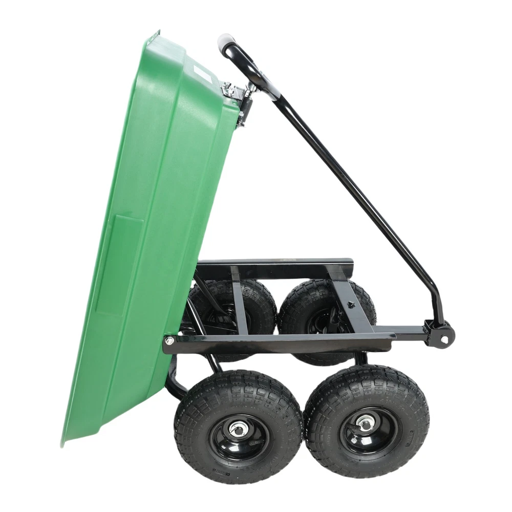Product Features 【High quality materials】 The Garden Wagon Cart vehicle is made of heavy plastic and durable steel frame.The soft sponge hand-holder protects your hands while pulling the cart. 10-inch pneumatic turf tires to tackle any terrain. 【Big Cart Capacity】 Load supplies up to 300lbs on the flat platform while the tilted shape holds and dumps up to 200lbs. Wagon Carrier is large enough for you to load lots of stuffs if you need. 【180 Degree Turn】 Garden Dump Cart handle has a 180 degree turn range that makes transportation quick and easy. It is long and flexible enough to adjust angle as needed. 【Durable and Light】 This Wagon Carrier can be a good helper in life. Once the cart reaches the destination, supplies, such as sand or gravel, can easily be dumped. EASY ASSEMBLY】 Our garden cart can be easily installed with the tools we have. It will become your right-hand man. On Nov 5, 2024 at 18:47:32 PST, seller added the following information: