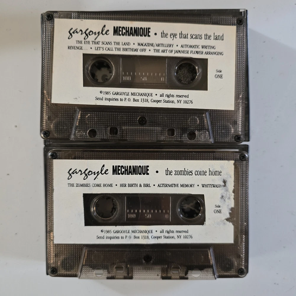 For your consideration is this original Gargoyle Mechanique 2x Cassette Tape's. Tapes come housed in a paper slipcase. Label of one tape has some damage, as shown in photos. Otherwise excellent collectors condition. From The Jim Sotet collection. Sotet was a Mercury Records Executive from the 1970s until his retirement in the mid 2000s. See photos for exact item condition. Check out our ebay store for more rare and rad collectibles! ****Buyer pays shipping which includes tracking and FULL insurance****