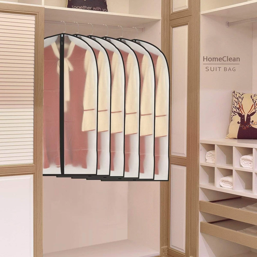📣PEVA+ 📣【HIGH-QUALITY UPGRADED 5# ZIPPERS】:You may suffer a traumatic experience on the broken or slip off zipper, but no more with our hanging garment bag. We chose 5# zippers with superior quality to ensure smooth and flawless zipping experience and a longer service life. 📣【EXCELLENT COST EFFICTIENCY】: You will receive 6 pcs of peva garment bags with a size of 24*40 inch. These suit bags for closet storage are washable and thus you can easily clean them and reuse them for a long period of time. 📣【DURABLE & LONG-LASTING】:Made of soft and durable PE material with a thickness of 50gsm, This upgraded version clear garment bags for storage is washable, lightweight and built to last. Dustproof and water-resistant plastic garment bags protect your delicate clothes against dampness, dust, pet hair, and keep them fresh and free! 📣【ADVANCED DESIGN】:The clear design of small garment bags for hanging clothes eliminates the guess work of trying to figure out what’s inside! Each suit protector garment bags is 40 inch in length and 24 inch in width, making it perfect for storing small shirt, faux fur coat, T-shirts, winter sweater, short jacket, uniforms, winter coat, pure silk clothes etc. 📣【RISK-FREE PURCHASE】: hanging clothes cover for men and women is the best solution for your problems! At , it is our ultimate goal to provide our customers with the best-quality products and service, so if you have any question about the product, please don’t hesitate to turn to us, we are always ready to help you!