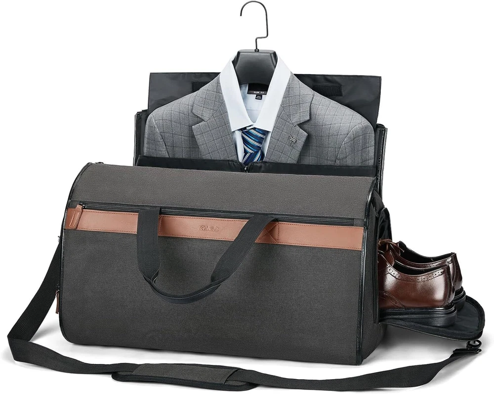 Thanks! Garment Bags for Travel - 2 in 1 Suit Bag for Men Women 45L Garment Duffle Bag 2 in 1 convertible garment bag: This garment travel bag can be converted to a garment bag or a travel duffle bag. The size of the suit bag is 21 x 11 x 12 and the capacity is 45L which is roomy enough to hold your travel essentials and convenient to carry everywhere Great garment bags for hanging clothes: While opening this garment bag and laying it out, the handle can be hung on the hook. The suit bag travel has 6 inner pockets including 1 necktie pocket, 2 small zipper pouches, 1 mesh slip pouch, 1 padded laptop pocket and 1 suit compartment. It can store your suits and dresses and other small accessories 45L Large travel bag: Besides the internal pockets mentioned above. After assembly, this garment duffel bag works great as a 45L duffel bag. It has a separate shoe compartment on the side, 1 large front zipper pocket, small items storage pouch, 1 back ticket pocket Duffle bag for travel with shoe compartment: This travel garment bag has a separate shoe pouch that can hold your shoes or dirty clothes, making it easy to separate them from your clean clothes Multifunctional carry on duffel bag: The overnight bag can be assembled by connecting multiple zippers, and the small buckles on both sides can keep the bag from unraveling. Thick fabric and water resistant surface make the travel bag more convenient to use. The trolley sleeve can be slid over the suitcase handle to keep stable and secure. it also can be used as a travel bag, carry on bag, overnight bag, suit bag, or garment bag when tr Shipping We offer FREE shipping on all orders! We ship within Three business days of payment, usually sooner. We use a selection of shipping services such as UPS, FedEx, USPS etc. We only ship to the lower 48 states, no APO/FPO addresses or PO Boxes allowed. Local pickups and combined shipping options are not provided at this time. Return You can return a product for up to 30 days from the date you purchased it. Any product you return must be in the same condition you received it and in the original packaging. Please keep the receipt. Customer satisfaction is very important to us. If you have any problem with your order, please contact us and we will do our best to make you satisfied.