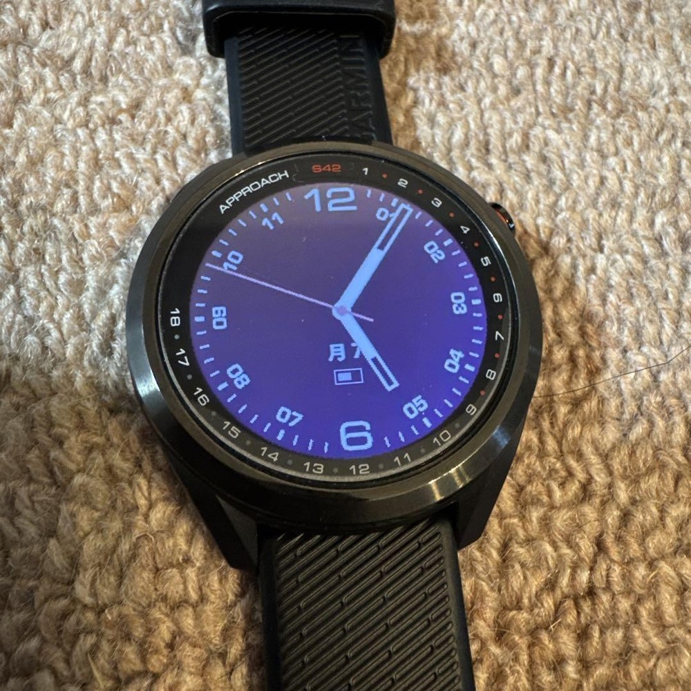 Garmin Approach S42 GPS Golf Smartwatch + Charging Cable, Used, Good Condition Key Features **Product Description:** - Brand: Garmin - Product Type: Smartwatch - Model: APPROACH S42 **Detailed Features:** - GPS functionality for golf - Includes USB charging cable **Condition of the Item:** - Used condition with minor scratches on the bezel, not noticeable unless closely inspected. - Screen protected with a film since purchase. **Item Specifics:** - Brand: Garmin - Model: APPROACH S42 - Condition: Used with minor scratches - Included Accessories: USB charging cable Specifications Brand Garmin Country Japan Product Description Item Title Garmin Approach S42 Gps Watch Body And Charging Cable Payment Supports managed payments Please pay within 5 days after auction is finished. About Us We are located in Japan. It's our pleasure to make you happy by proposing our recommend item. If you have any questions or request about items, please feel free to ask us. International Buyers - Please Note: -Import duties, taxes, and charges are not included in the item price or shipping charges. These charges are the buyer's responsibility. -Please check with your country's customs office to determine what these additional costs will be prior to bidding/buying. -These charges are normally collected by the delivering freight (shipping) company or when you pick the item up - do not confuse them for additional shipping charges. -We do not mark merchandise values below value or mark items as - gifts - The US and International government regulations prohibit such behavior. Thank you for your understanding.