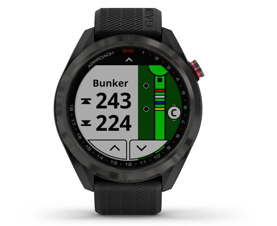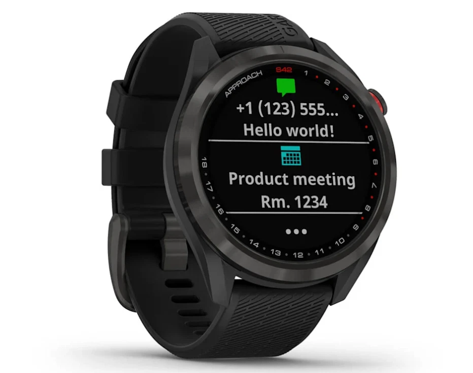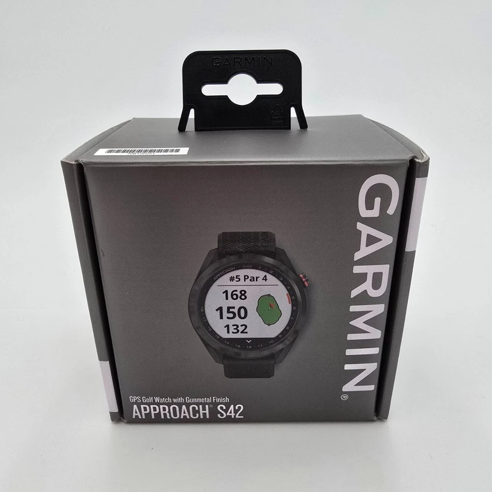 The Garmin Approach S42 GPS Golf Watch is a stylish and functional smartwatch designed for both indoor and outdoor use. With a display resolution of 240 x 240 and a 1.2-inch touchscreen, this watch provides clear visuals for tracking speed, time, and distance during activities like running, golfing, and gym training. It offers features such as temperature monitoring, goal setting, alarms, a calendar, and GPS capabilities to enhance your fitness routine. The rechargeable battery provides up to 10 days of usage, making it a reliable companion for the gold course or your workouts. - 43,000+ preloaded courses - Easy to read color touchscreen - Rechargeable battery - AutoShot game tracking - Green View - Green Contour Data - Smart notifications - Metal bezel and silicone strap - Watch, charging/data cable, and documentation included in the box