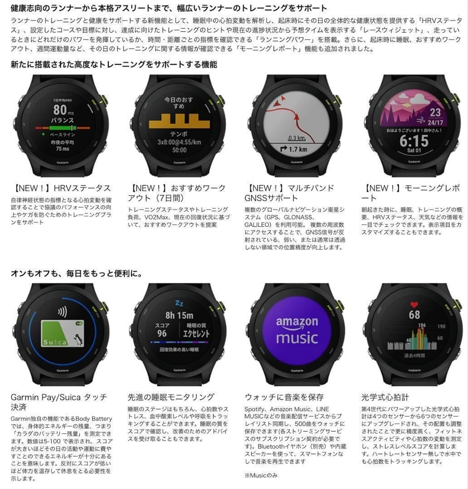 Garmin Forerunner 255S Running Watch Black 18mm Band Used Key Features **Product Description:** - Brand: GARMIN - Product Type: Running Watch - Model: Forerunner 255S - Color: Black - Band Size: 18mm - Condition: Used, fully functional with all accessories included. **Detailed Features:** - Suica compatible - Equipped with GNSS multi-band for faster and more accurate GPS positioning - Daily recommended workouts - Running power measurement to track power output per minute and per kilometer - Interval profile detection for walking and running data analysis **Item Specifics:** - Brand: GARMIN - Model: Forerunner 255S - Color: Black - Band Size: 18mm - Condition: Used Specifications Brand Garmin Country Japan Product Description Item Title Garmin Forerunner 255S Black Payment Supports managed payments Please pay within 5 days after auction is finished. About Us We are located in Japan. It's our pleasure to make you happy by proposing our recommend item. If you have any questions or request about items, please feel free to ask us. International Buyers - Please Note: -Import duties, taxes, and charges are not included in the item price or shipping charges. These charges are the buyer's responsibility. -Please check with your country's customs office to determine what these additional costs will be prior to bidding/buying. -These charges are normally collected by the delivering freight (shipping) company or when you pick the item up - do not confuse them for additional shipping charges. -We do not mark merchandise values below value or mark items as - gifts - The US and International government regulations prohibit such behavior. Thank you for your understanding.