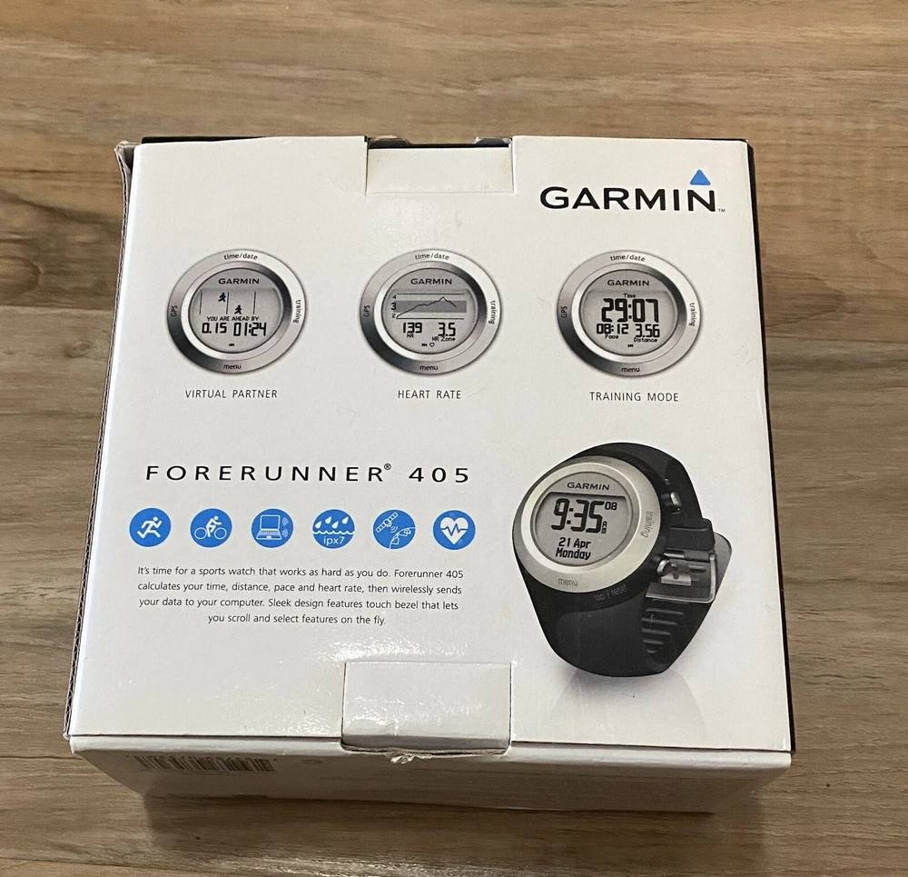 Garmin Forerunner 405 GPS Sport Watch with Charger Black No Heart Rate Monitor Comes with everything in the pictures. It has scratches on body. No heart rate monitor NOTES: We appreciate your business and would ask that you please first message us to work out any issue. Please review pictures prior to purchase. ONLY comes with what's pictured. SHIPPING: All orders are shipped 1-3 business days after purchase. Tracking is uploaded as soon as an order is shipped. Thanks