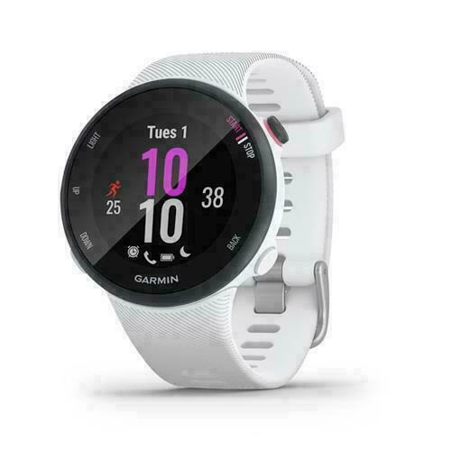 The Garmin Forerunner 45S GPS running watch in white is a reliable and user-friendly device perfect for tracking your fitness progress. With GPS technology, you can accurately track your walks, runs, and jogs, whether you're using iOS or Android operating systems. The watch is powered by batteries and the model is specifically designed for fitness enthusiasts looking to monitor their performance and improve their health. It is a must-have for those serious about their fitness goals and looking for a high-quality GPS running watch. Will operate while on the charger and go off when disconnected. Charger not included