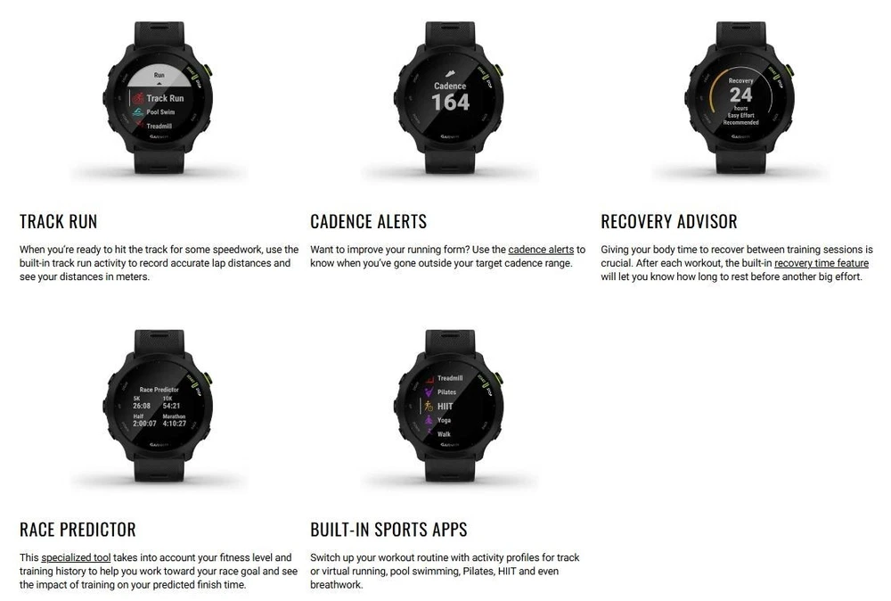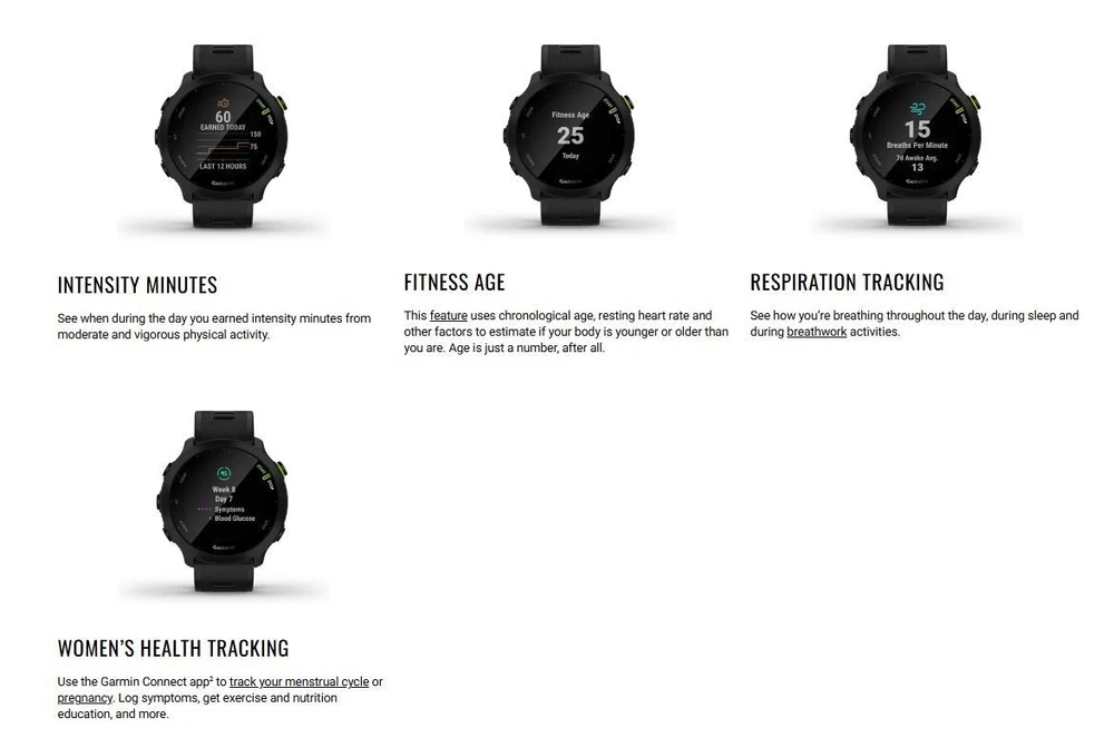 The Garmin Forerunner 55 White GPS Running Smartwatch is a stylish and functional fitness tracker designed for women. With a sleek white design and durable rubber and silicone materials, this smartwatch provides accurate measurements for heart rate, speed, cadence, time, distance, and calories, making it ideal for gym workouts, swimming, and running. The watch also features a variety of useful features including a calendar/date display, average speed calculation, alarm, stopwatch, GPS tracking, pedometer, clock, data review, compass, and calorie and heart rate monitoring. It is powered by batteries and has a display resolution of 208 x 208, providing a clear and easy-to-read interface for all your fitness goals.