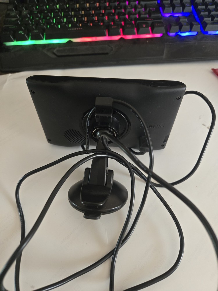 The Garmin GPS unit is an older model that still functions properly. It comes with a 5" screen, making it easy to read while on the road. The unit also includes a car charger for added convenience. Despite being older, this Garmin GPS is a reliable and practical option for navigating with a trusted brand like Garmin. There is a small scratch on the screen that does not affect its performance