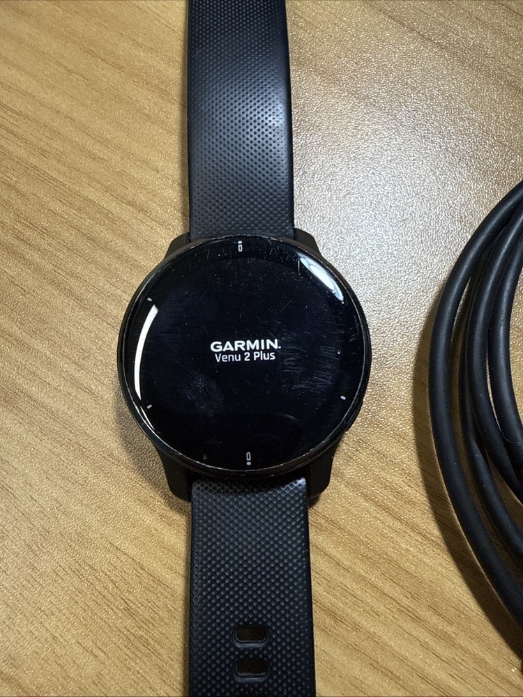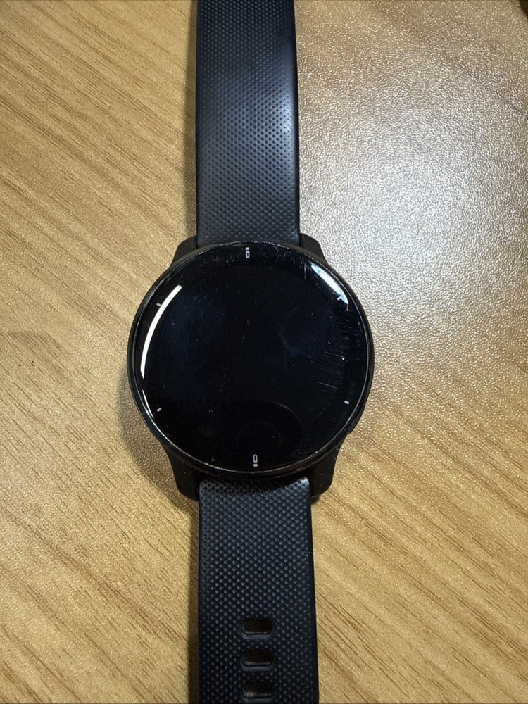 In fair condition. There are many nicks and scratches on the screen and along the bezel but none affect the functionality of the watch. This watch was used sparsely but for extreme expeditions such as alpine mountaineering. It functions as it did when it was new and it is a steal for anyone who wants a rugged watch for serious outdoors. The GPS works great and is perfect for marking the location of your camp when you have no cell reception and are venturing through the forest. Included is the watch and two chargers. It is the 43mm model and the battery life still gives you 7+ days on a single charge unless you are using the heavy battery draining features like continuous O2 monitoring. Overall, great watch from a functional standpoint priced for the condition.