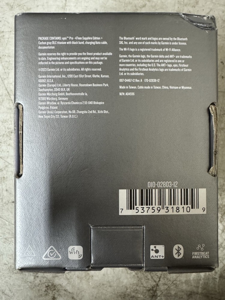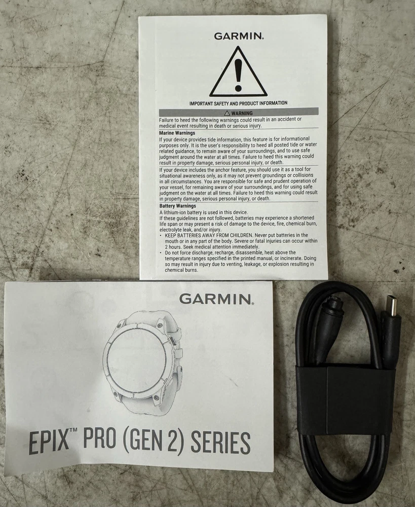 The Garmin epix Pro (Gen 2) Sapphire Edition GPS Watch in Carbon Gray/Black, 47mm is a high-performance fitness tracker designed for both indoor and outdoor activities. With a sleek black design and a durable titanium build, this watch offers a variety of features such as heart rate monitoring, distance tracking, and sleep recording. Its GPS capabilities allow for precise location tracking, while its battery life of up to 6 days ensures long-lasting use. Compatible with both iOS and Android operating systems, this watch is perfect for gym training, swimming, and running, making it a versatile and reliable option for fitness enthusiasts. Also has a built in flash light! These watches are like new condition! No scratches or blemishes. Any questions feel free to ask! :)