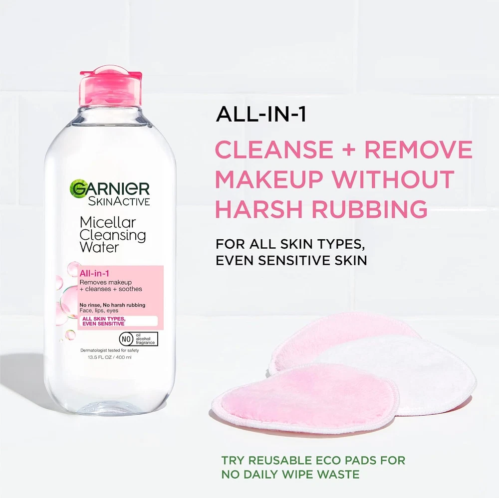 ALL-IN-1 Cleanser To hydrate and Rrefresh skin: This all-in-1 micellar cleansing water is a facial cleanser and makeup remover that is gentle on skin. This micellar water for all skin types gently cleanses, removes makeup, dirt and oils from skin. A soothing formula that gently cleanses: micellar water leaves skin feeling/looking healthy and hydrated; formulated to be gentle on even the most sensitive skin; easily removes makeup without over-drying skin. A multi-purpose cleanser powered by micelle technology: Micelles work like a magnet to gently cleanse, while removing makeup, dirt, sunscreen, and excess oil all in 1 step; No rinsing, no harsh rubbing- just clean, refreshed skin. Dermatolgist and Ophthalmologist tested for safety: safe for use on face, lips and eye area. Approved by Cruelty-Free International under the Leaping Bunny Program. Vegan formula is oil-free, paraben-free, fragrance-free, sulfate-free and silicone free. America's #1 Micellar Water Brand: there's a reason one bottle is sold every 3 seconds!* *Source: Nielsen Measured Mass Market, Full Year 2022, Unit Sales