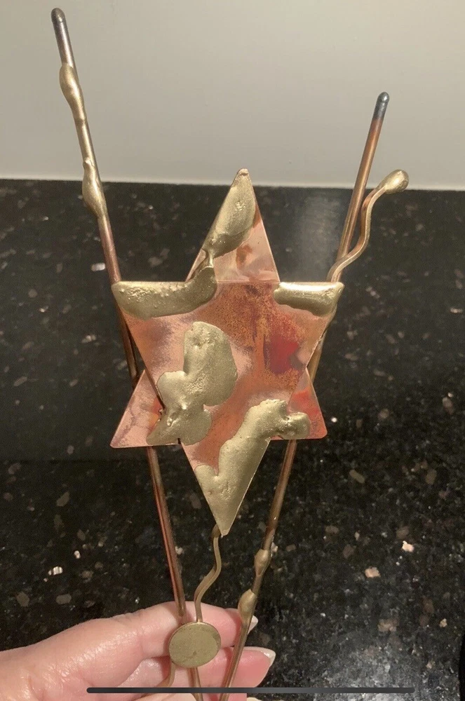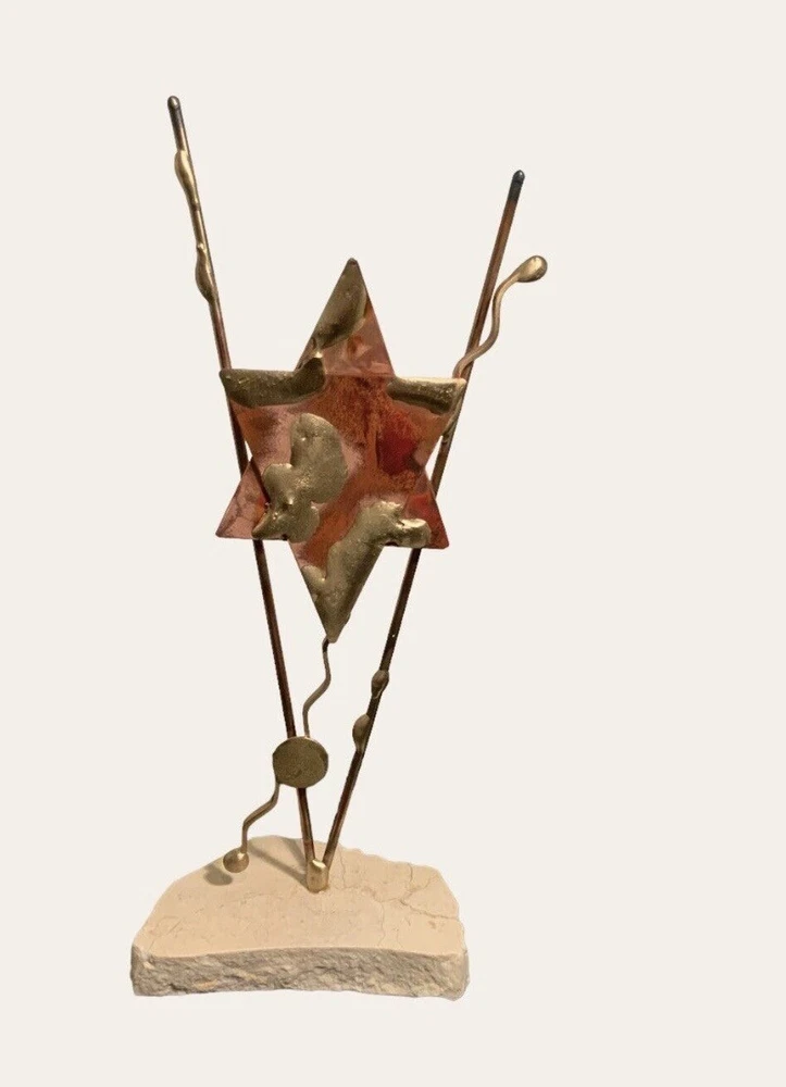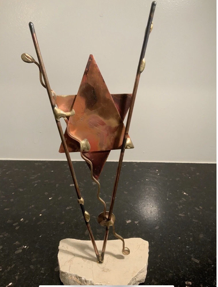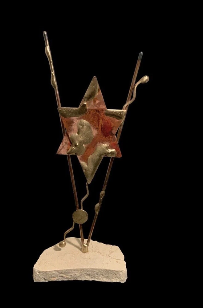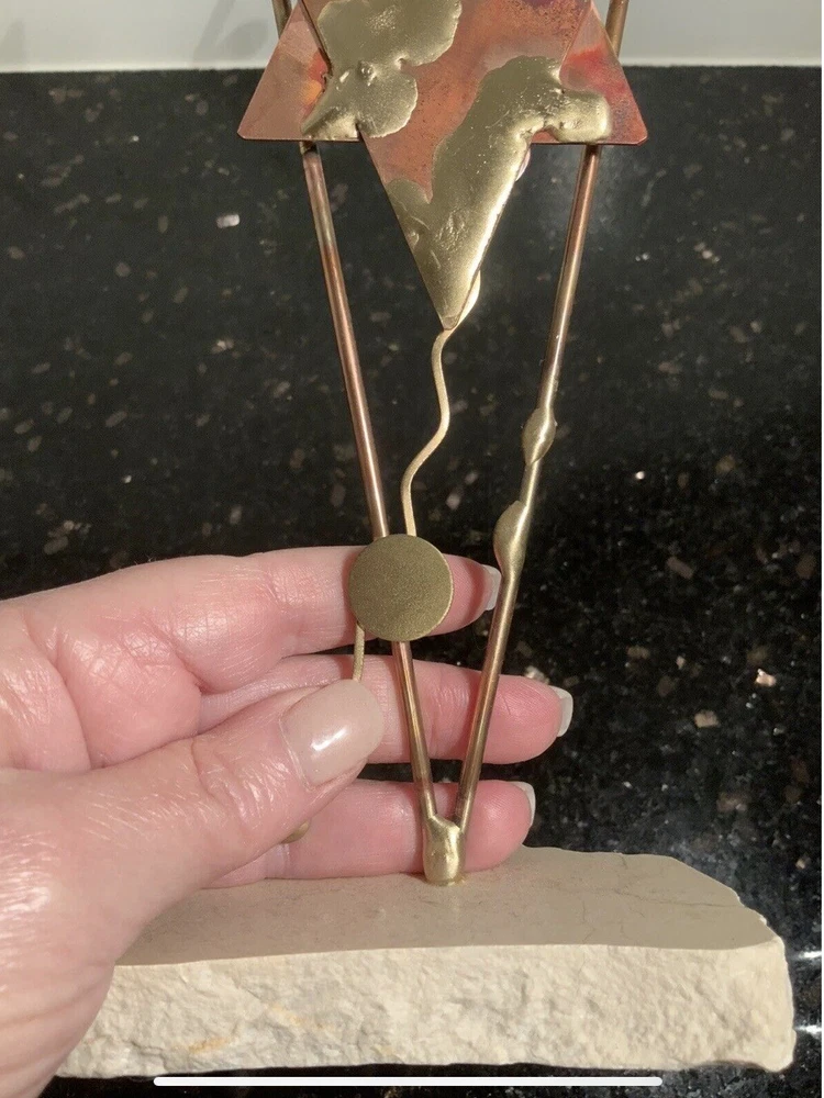 This is a signed Gary Rosenthal sculpture. It is handcrafted with mixed metals. It’s in excellent condition and measures 10” in height.