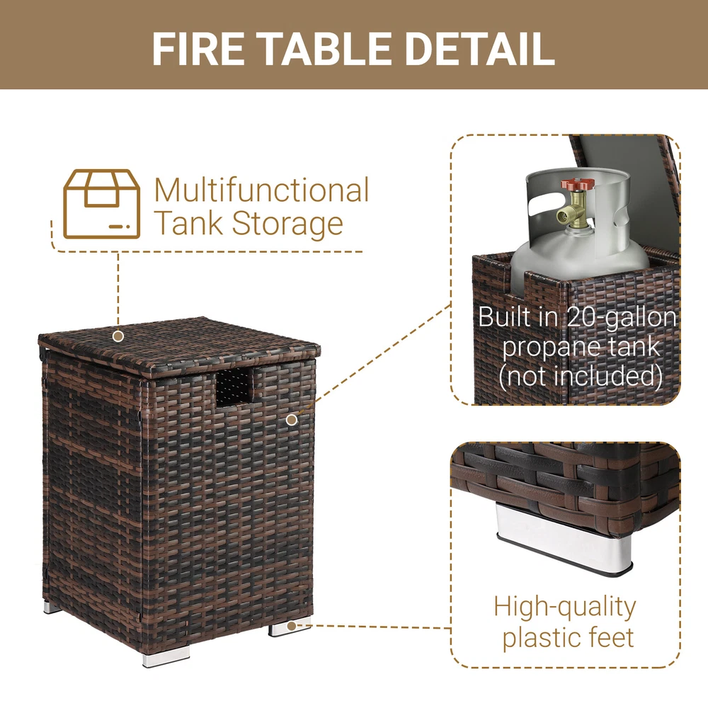 Gas Bottle Storage Table Iron Frame Rattan Side Table Brown Gradient 40x40x57cm