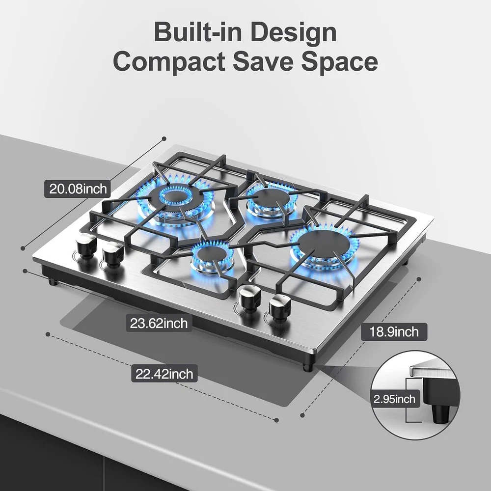 Gas Cooktop 4 Burners, 23Inch Stainless Steel Gas Stove Top, Built-in Gas Pro...