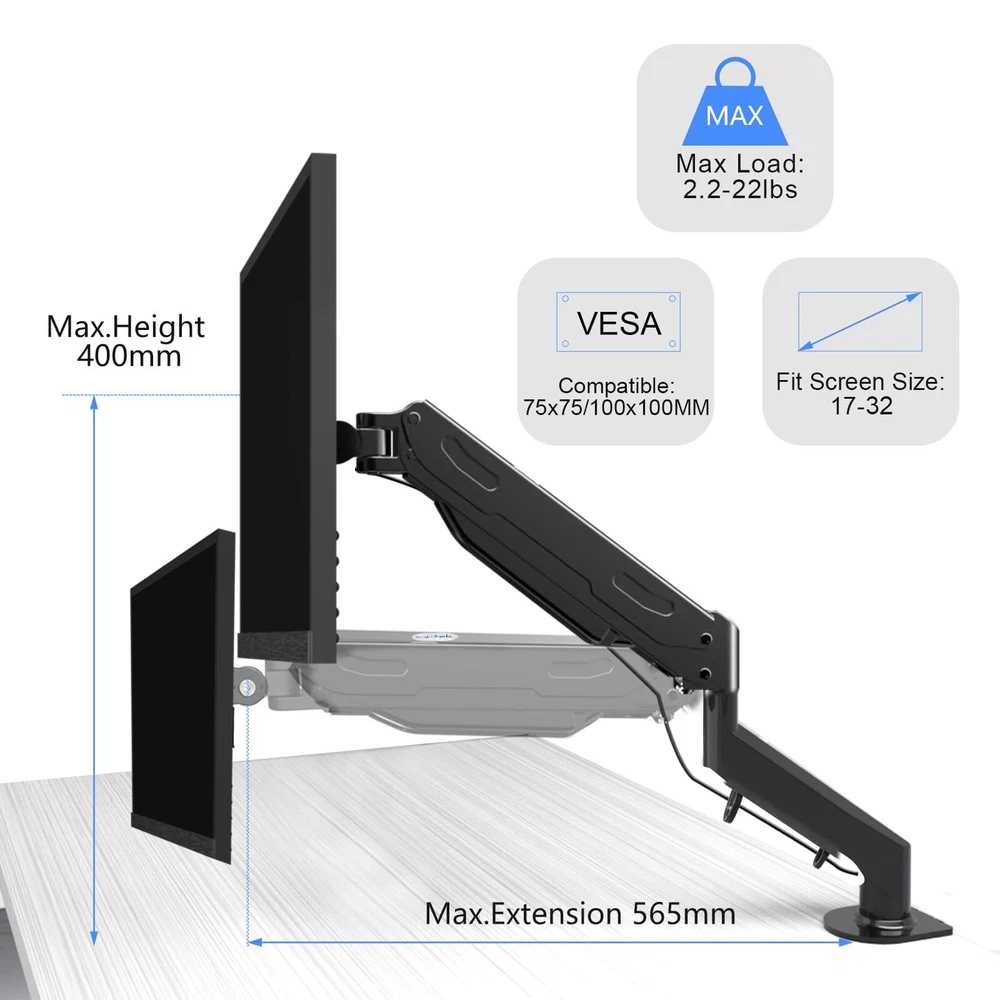 Gas Spring Monitor Arm 32 Inch, Single Monitor Mount, Single Monitor Arm, Single Monitor Desk Mount, VESA Mount, Computer Monitor Stand, Monitor Arm Desk Mount Support 13-32inch and 22lbs Screen Relieve neck and eye pressure: This monitor stand is designed to greatly enhance user work comfort and efficiency. Through personalized adjustment of the height, depth, and angle of the monitor holder, users can set the monitor in the most suitable viewing position, effectively preventing neck fatigue and eye discomfort caused by prolonged staring at the screen, which is beneficial for maintaining physical health. Enhanced user flexibility: This desktop monitor stand has extremely high versatility, allowing users to easily switch between landscape and portrait modes, and even in a dual screen configuration, it can be easily adjusted. Whether it is a hanging ring installation or a standalone installation, we provide users with more diverse layout solutions. Optimize space utilization: By hanging the monitor on a bracket, a large amount of desktop space can be released, which not only makes the desktop appear more concise and spacious, but also fully utilizes this space to store commonly used office items such as calculators, books, stationery, etc., making the desktop orderly and the work area more spacious. Assist in developing a good posture: By using VESA standard display brackets, the monitor position can be accurately adjusted according to ergonomic needs, which is very beneficial for maintaining correct sitting and standing positions. It is especially suitable for use with elevated desks, allowing users to always have the monitor at the line of sight when working at an interchange. Easy installation experience: This adjustable monitor bracket comes with all necessary accessories and a detailed installation manual, making the installation process extremely simple and fast, usually completed within ten minutes. However, please note that this monitor stand is not suitable for tables made of PB (particle board), MDF (medium density fiberboard), or glass materials SHIPPING Domestic Buyers - We ship within 3 business days of payment, usually sooner - We offer FREE shipping on all orders! - We only ship to the lower 48 states, no APO/FPO addresses or PO Boxes allowed - We have confidence in our products, but if you are not fully satisfied please contact us within 30 days of purchase and you will get full refund. International buyers – please note: Import duties, taxes, and charges aren't included in the item price or postage cost. These charges are the buyer's responsibility. - Please check with your country's customs office to determine what these additional costs will be prior to bidding or buying. Return Policy - This product comes with 30-Days Money Back Guarantee. - If you receive an item and it doesn't work properly or you don't like it because of any reason at all, - we have a 100% refund/return policy. We will ship you a new item or refund your money for the full sale amount. - For all returned products, buyers MUST contact us for the returning address. * Order Cancellation Policy ** You can return a product for up to 30 days from the date you purchased it. 1. The seller reserves the right to cancel the special case only due to eBay cancellation fee. 2. The decision of seller is the final. 3. The seller will respond to the cancellation request within 2 business days. Please wait for the result of cancellation. 4. In case the cancellation is not completed by some reasons, the buyer can follow the options below to get the refund. 4.1 The buyer can reject the item when it arrives. 4.2 The buyer can send the item back to the seller within 30 days If the buyer receives item (USA Shipment ONLY). The seller will provide the FREE return label to the buyer when the buyer opens " Return Item" case on eBay by using the reason as "Change my mind" ONLY. 5. When buyer has placed the order. The order will be processed and completed by automatic warehouse system within 5 minutes. In case that buyer sends the cancellation request after 5 minutes of placing the order, the request will be rejected. **Sending direct message to cancel the order is not allowed for every case.* Return Policy For the return case - If buyer would like to return the items for refund or replacement, please CONTACT SELLER to receive the free return label from seller. The refund or replacement will be processed with the tracking number of return label which is provided by seller only. The other ways of return which are not approved by seller will not be processed for the refund or replacement.
