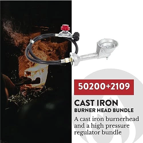 Return Policy Fast Delivery Trusted seller GasOne 50200+2109 High Pressure Cast-Iron Round Burner Head with Brass Fitting O, Regulator & Hose Product Description Includes - cast iron high pressure burner head and 0-20 psi high Pressure regulator and 4 ft hose Universal replacement burner - With our burner head, you can use it with high pressure or low pressure regulators (high pressure regulator is recommended for high output) Brass fitting orifice Block - includes brass fitting orifice Block & air Shutter and spring Heat resistant - cast iron will not melt easily compared to aluminum construction To be used with propane only Shipping Returns Payment Shipping Shipping is FREE to all addresses other than APO/PO boxes in the lower 48 states. All our stock ships from US-based warehouses. Shipped via USPS or UPS (depending on location and package weight) Unless stated otherwise, all orders will ship within 24-72 hours of your payment being processed. Check our feedback to see the great reviews of FAST shipping we offer. Returns Seller does not accept returns Payment We currently accept payment via eBay managed payments only. Once payment is cleared, we will dispatch your shipment within 1-3 business days. Please refer to the "Shipping" tab for more information regarding shipping speed to your destination.
