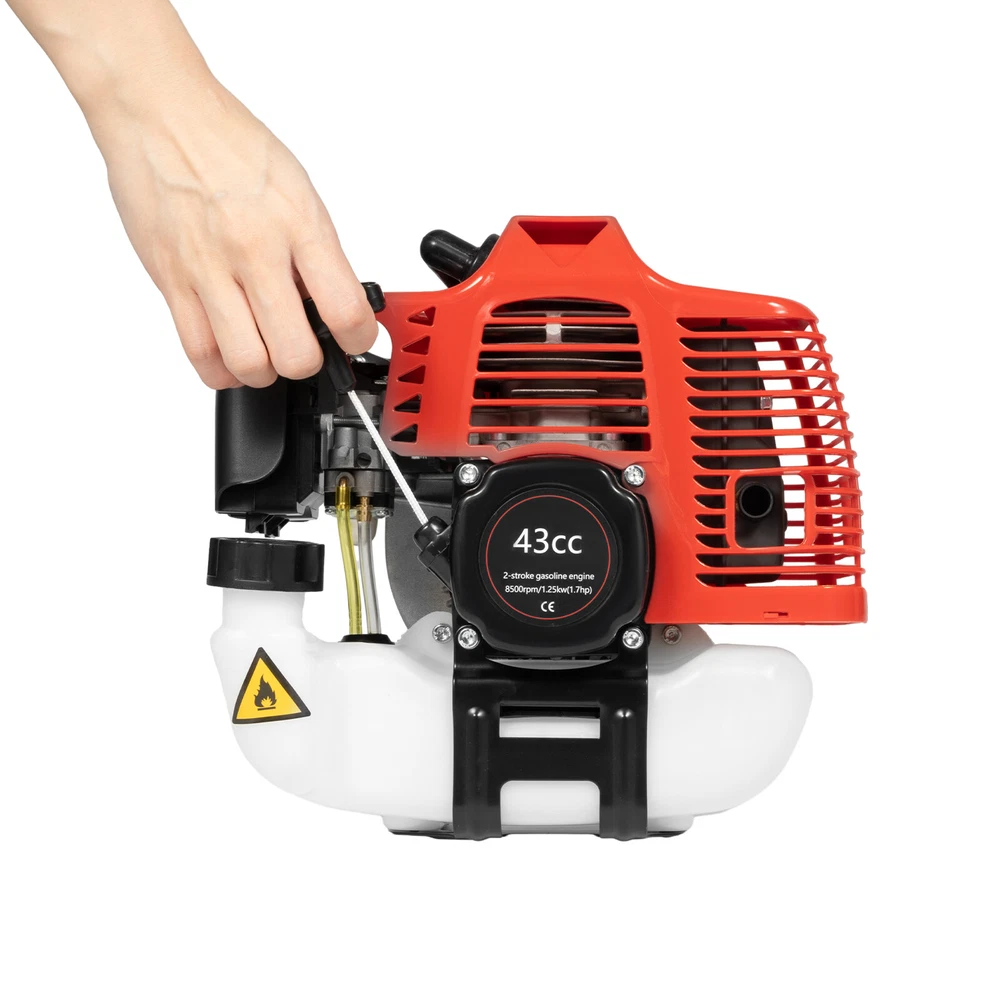 Engine Model: 1E40F-5A Material: Aluminum Alloy, Manganese Steel, PP Plastic Engine Power: 1.25kw/6500-8500rpm Engine Type: Air-cooled, Two-stroke, Single-cylinder Gasoline Engine Engine Displacement: 42.7cc Carburetor Type: Pump-film type Idling Speed: 2800-3200r/min Fuel Tank Capacity: 1L/0.26gal Gasoline / Circulating Oil Mixing Ratio: 20-25:1 Starting System: Manual Starter Length: 240cm-350cm/94.48-137.79in Guide Bar Size: 30.48cm/12 in Chain Pitch: 0.95cm/0.375in Chain Size: 0.05P Packing Size: 110*29*29cm/43.3*11.41*11.41in Carrying Type: Side-attached Net Weight: About 11kg/24.25lbs Gross Weight: About 12kg/26.45lbs 1x Gas Trimmer 1x Extension Pole 1x Carrying Strap 1x Screwdriver 1x Goggles 1x Fuel Proportioning Tank 1x Funnel 1x Tool Bag12" 42.7CC 2-Strok Gas Trimmer Saw Tree Trimmer Chainsaw Gas Powered Pole Saw Pruner Pruning Description Description Do you still have trouble trimming high branches? The pole chainsaw with a two-stroke engine has strong power, and the hard guide chain and guide plate can quickly cut through tree branches. The long enough pole as well as the strap design allows you to easily trim high branches without having to risk standing on high ground, making your pruning job safer. Key Features Good Durability : It is mainly made of high-quality aluminum alloy, manganese steel, and PP. These materials are not easy to deform and rust, therefore, it has a long service life and you can use it with confidence. Powerful and Efficient : The 1.25kw high-power, 6500-8500rpm high-speed two-stroke engine can provide strong cutting power for it. The sharp manganese steel chain and guide plate enable quick cutting of tree branches. It has a wide cutting range and high work efficiency with a maximum cutting diameter of 11.81 inches. Stable Engine: The excellent air-cooled cooling system and dense cooling holes can dissipate heat and cool down the engine in time. Moreover, the air filter helps to filter impurities in the air and reduce the wear and tear of dust and sand on the engine, which can achieve stable machine operation. Long Endurance Time: Its fuel tank is capable of holding 0.26 gal of fuel, which is a huge capacity. This gives the chainsaw a very long endurance time without frequent refueling. High Safety : It can only be activated by pressing both switches simultaneously, which can prevent accidental touch of the throttle switch. The push-button flameout switch also makes it safer for you to use. Convenient To Use: The detachable long pole makes it easy for you to store and carry. It can reach 7.87-11.48ft in height with the long pole attached, and the comfortable strap design allows you to use it with less effort, so you can easily cut high branches from the ground, which is very practical and convenient. Easy to Install : It has a simple structure and comes with detailed installation and operation instructions, allowing you to quickly install and operate it. Protective Package: To prevent the product from being damaged and bumped during transportation, we packed it with foam to protect your products to the maximum extent possible. Customer Service: Communication is the best way to solve problems. If you have any problems, please feel free to contact us. We will reply and solve the problem for you as soon as possible. Details Adjustable Handle : The ergonomic handle can be adjusted in position and angle at will by loosening the screws, so you can adjust it to a suitable position for use according to your height and arm length, making it more convenient to use. Start Handle: The anti-slip handle is easy to pull, making the machine start more convenient and faster. Quick Connector: The easy-to-use connector allows for quick disassembly and assembly of the connecting rod, making it more convenient to handle. Application It is suitable for sawing high branches and small trees in gardens, farms, parks, forests, pastures, orchards, and so on. Specification Material: Aluminum Alloy, Manganese Steel, PP Engine Type: Air-cooled, 2-stroke, Single-cylinder Engine Power: 1.25kw Speed: 6500-8500rpm Engine Displacement: 43cc Carburetor Type: Diaphragm Idling Speed: 2800-3200r/min Fuel Tank Capacity: 1L/0.26Gal Chain Fuel Tank Capacity: About 0.26L/0.07Gal Fuel Ratio: 1 Engine Oil: 20-25 Gasoline Starting System: Manual Carrying Type: Side-attached Extension Rod Length: 1.09m/3.58ft Total Length of Product: 2.4m-3.5m/7.87-11.48ft Guide Bar Length: 30.48cm/12inch Chain Length: 30.48cm/12inch Chain Pitch: 3/8" Guide Teeth Thickness: 0.05'' Max. Cutting Diameter: 30cm/11.81inch Engine Size: 26*17*26.5cm/10.24*6.69*10.43inch Packing Size: 110*30.7*29.5cm/43.31*12.09*11.61inch Net Weight: 8.8kg/19.4lbs Gross Weight: 10.95kg/24.14lbs Package Included 1x Pole Chainsaw 1x Extension Pole 1x Back Strap 1x Screwdriver 1x Goggles 1x Fuel Mixing Bottle 1x Funnel 1x Auxiliary Handle 2x English Manuals Other Accessories for Assembly Notes Before use, it is necessary to add gasoline and two-stroke engine oil to the fuel mixing bottle and mix them thoroughly. After use, please pour out the fuel in the fuel tank, drain it, or burn the fuel in the carburetor to avoid clogging the carburetor. Please pay attention to safety when using this product. Do not put your hands on the guide plate chain when the machine is running to avoid being hurt. Please read the user manual carefully before use and pay special attention to the safety precautions included. Please allow the slight color difference caused by the shooting light and 1-3cm error due to manual measurement, and make sure you do not mind before ordering. Payment Delivery details Terms of sales About us Contact us Payment We accept ebay payment 。 Fees such as import duties, taxes are not included in the item price or shipping costs. These charges are the buyer's responsibility. Delivery details Shipping: 2-9 working days to: USA Terms of sales We maintain high standards of excellence and strive for hundred percent customer satisfaction. 