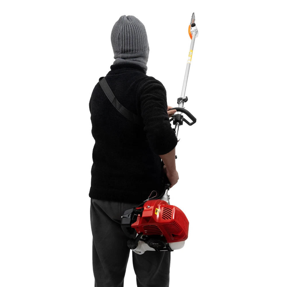 This gas-powered pole saw is a beast for trimming trees and pruning branches! The lightweight aluminum alloy and manganese steel make it durable yet easy to handle, while the 42.7cc engine delivers serious power. The adjustable length is super handy for reaching high branches, and the 12-inch bar cuts through thick limbs effortlessly. Starts up quick with the manual pull, and the fuel mix is simple. Perfect for tackling overgrown yards—definitely worth it for anyone needing a reliable, heavy-duty pruning tool!