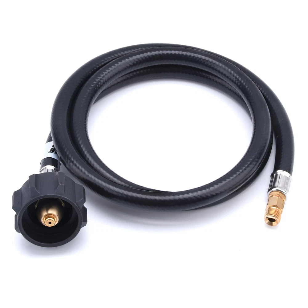 Connect your camper's 1/4" inverted flare inlet regulator to a 20lb or 40lb LP tank(NOT 1/4'' Male NPT) The pigtail hose can also be used to connect to an installed 4-Port Tee as an auxiliary propane supply Installs quickly , tool-less attachment to propane tanks and regulator High quality solid brass fittings - provides secure, airtight connection propane equipments Perfects for BBQ, RV and camping needs or having an outdoor cookout