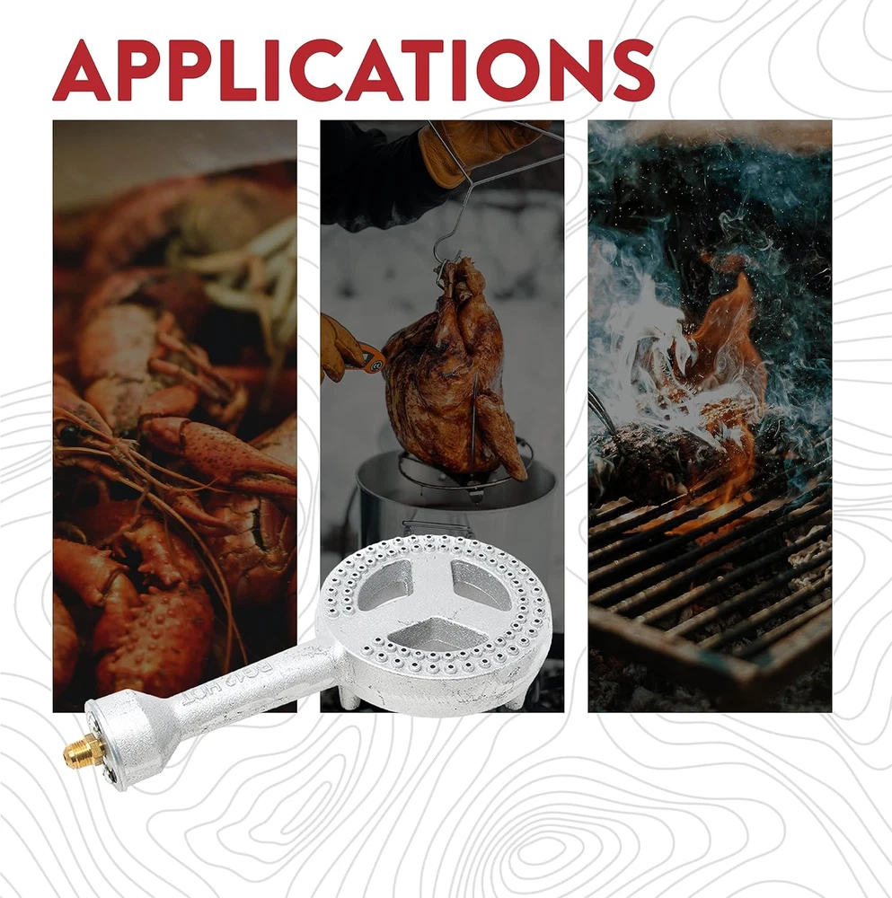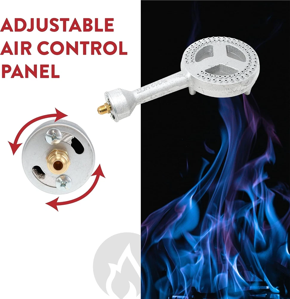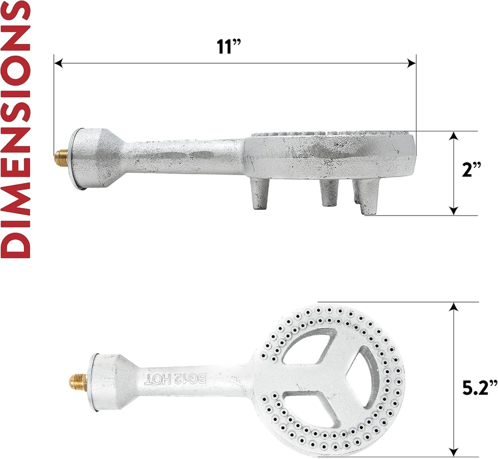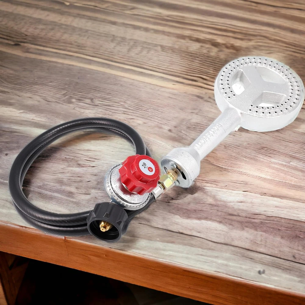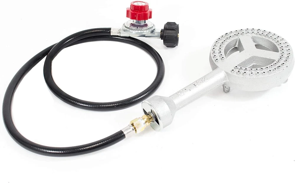 Includes - Cast Iron high pressure burner head and 0-20 psi high Pressure regulator and 4 ft hose Universal replacement burner - With our gas one burner head, you can use it with high pressure or low pressure regulators (high pressure regulator is recommended for high output) Brass fitting orifice Block - includes brass fitting orifice Block & air Shutter and spring Heat resistant - Cast Iron will not melt easily compared to aluminum construction To be used with propane only Note: Image 3 accessories: Those parts come pre-installed for customer’s conveniences Includes - Cast Iron high pressure burner head & 0-20 psi high Pressure regulator & 4' Hose