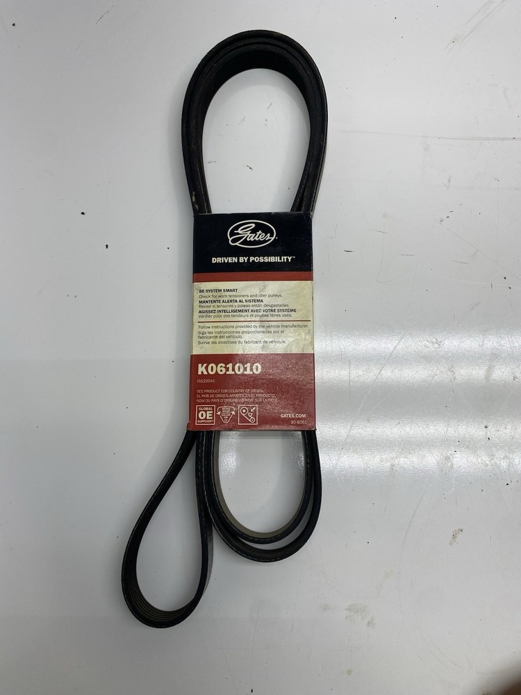The Gates K061010 FleetRunner Micro-V Serpentine Belt is a high-quality replacement part designed for car and truck vehicles. Manufactured by Gates, a trusted brand in automotive parts, this serpentine belt features a green stripe for easy identification. With the manufacturer part number K061010, this belt offers durability and reliable performance for your vehicle's accessory belt system. Ideal for those in need of a new serpentine belt, this Gates product is a dependable choice for automotive maintenance and repair.