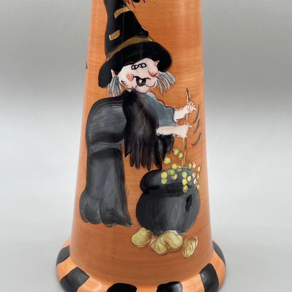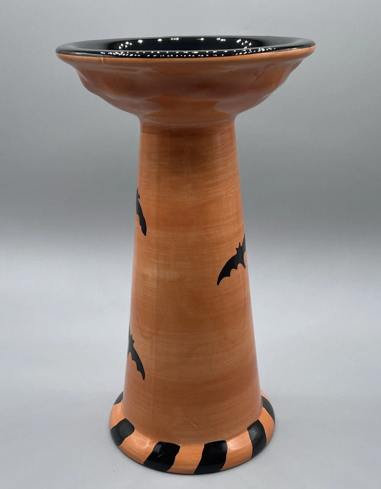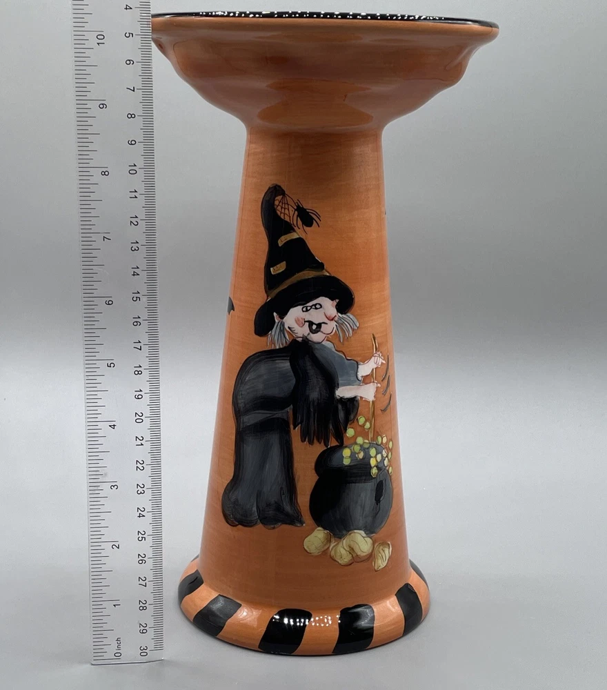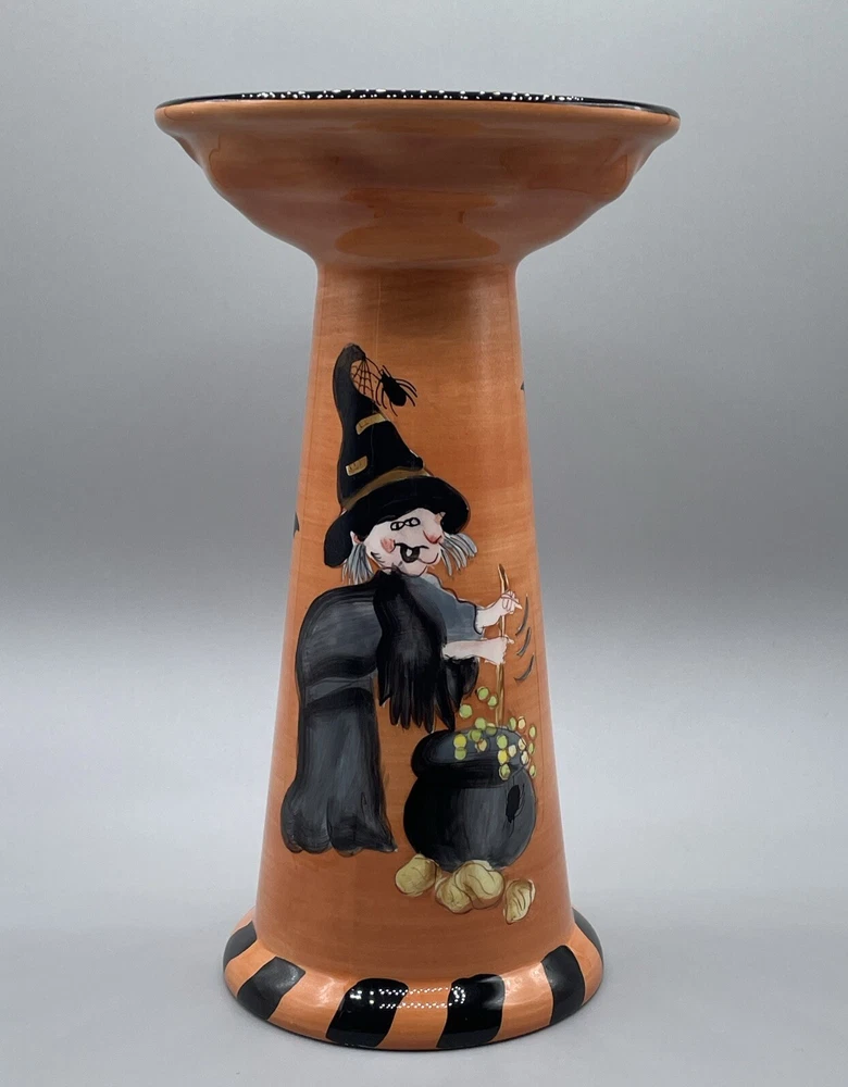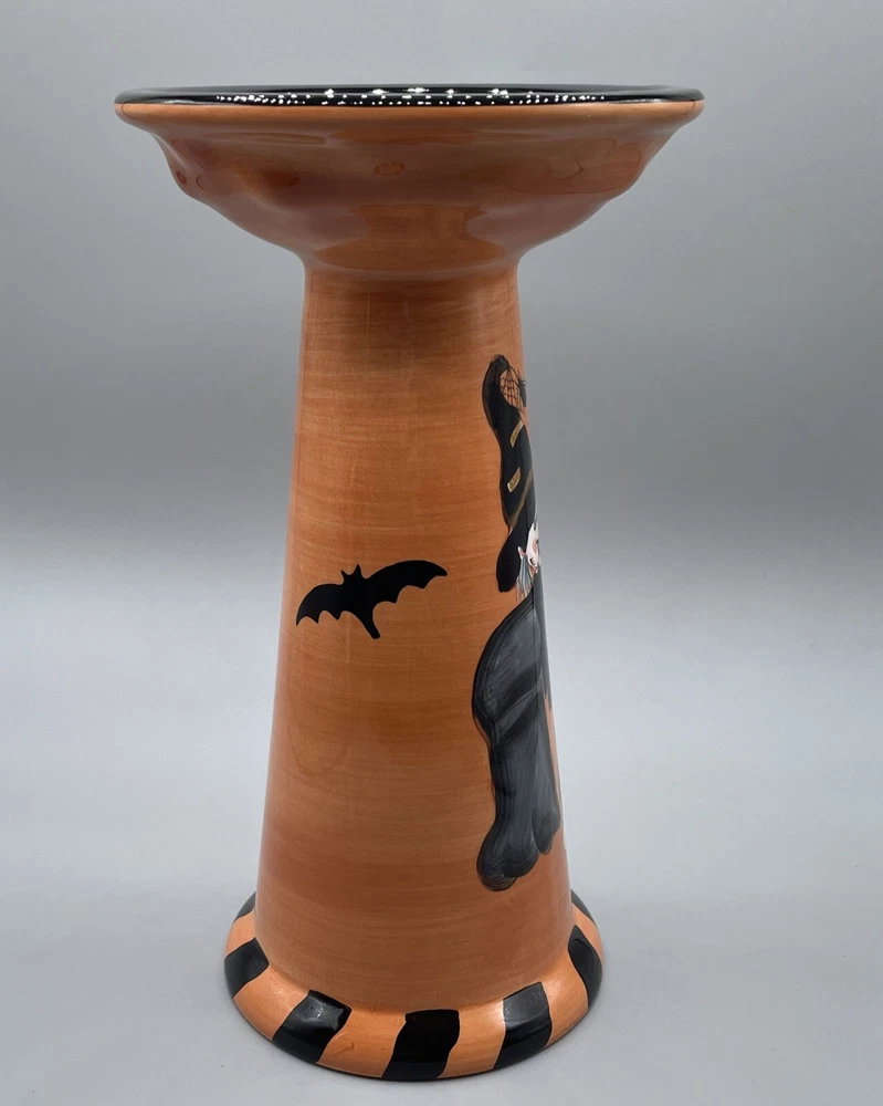 Gates Ware Laurie Gates Halloween Pedestal Candle Holder Witch Bats Cauldron Approximately 10.25” tall
