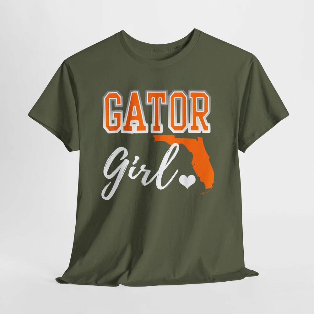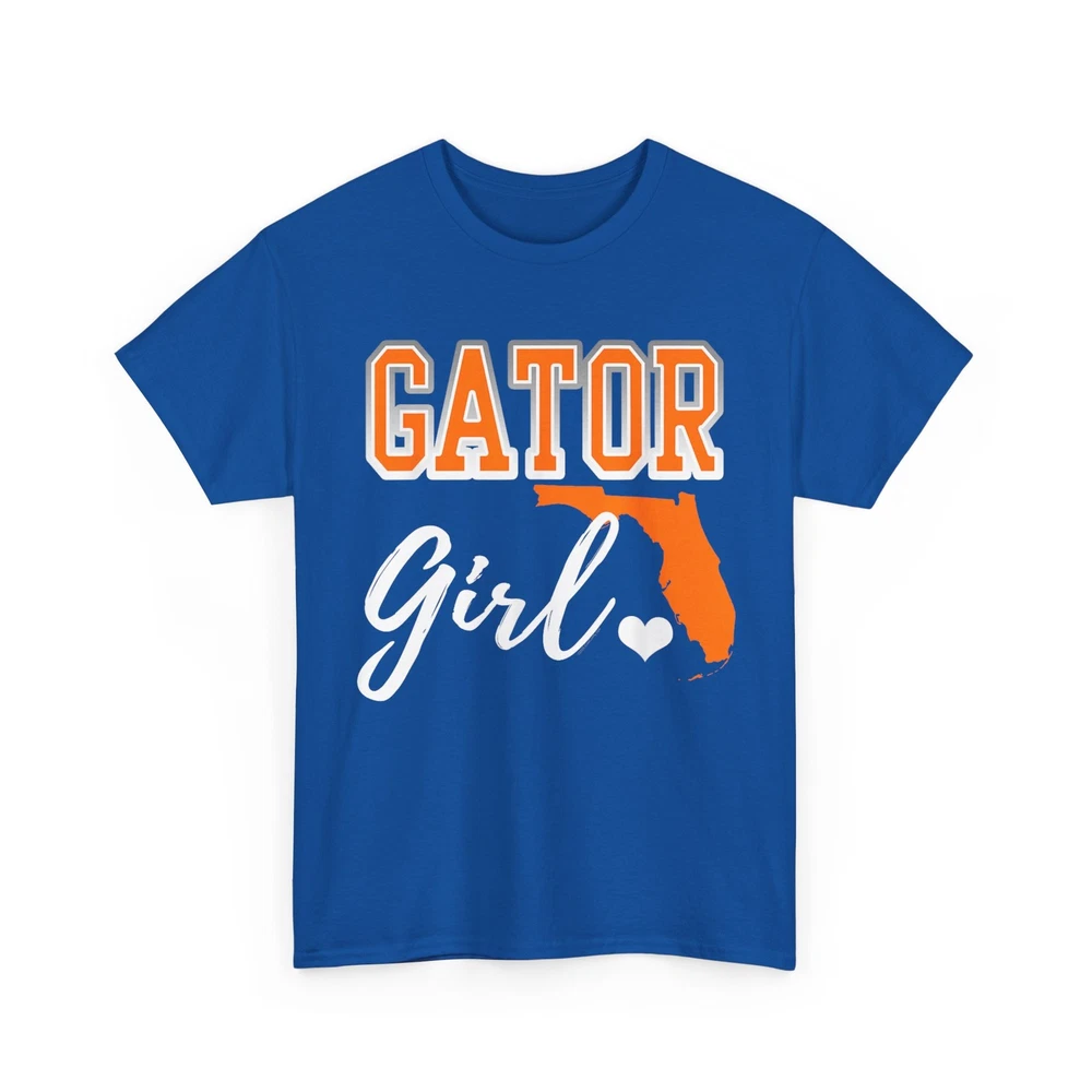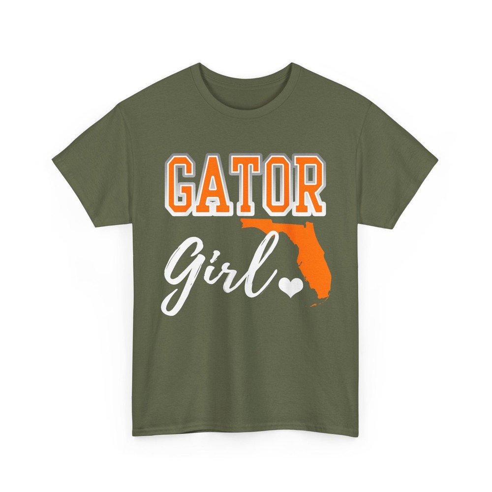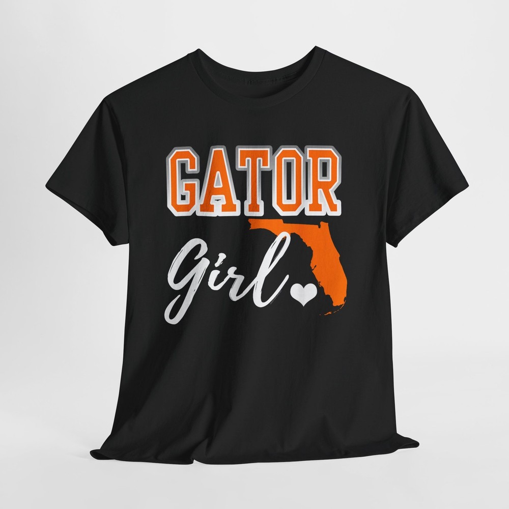 Gator Girl shirt. Florida heart map shirt. Show pride for your Florida with cute script writing, heart and map shape. Gator girl design for girls, women.