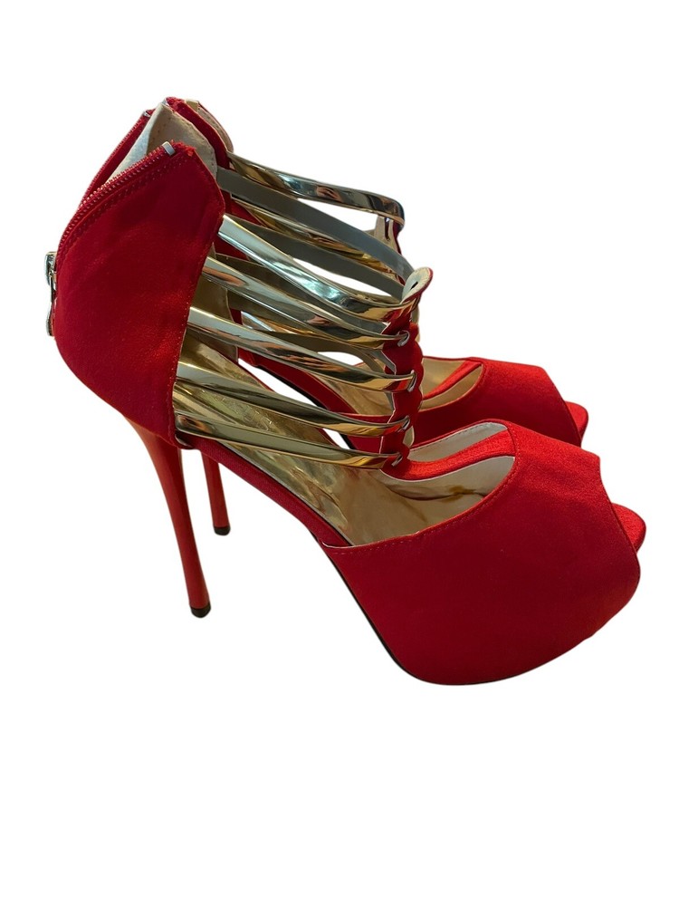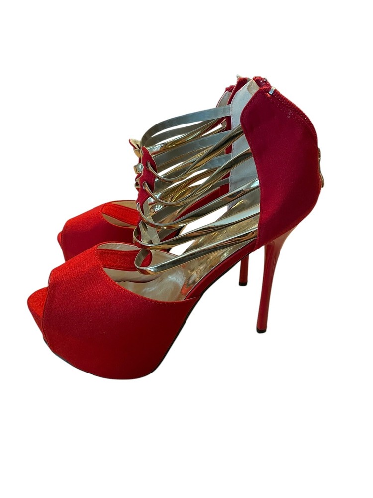 Gatuxus Womens Size 10 Red Open Toe Platform Heels for Women