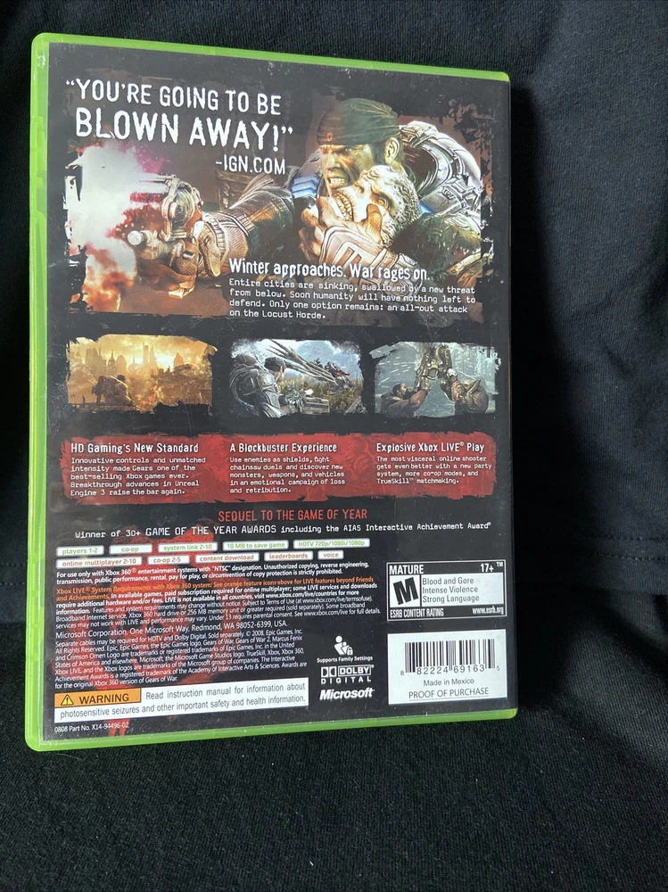 HomeGears of War 2 XBOX 360 (Video Game) Action Mature