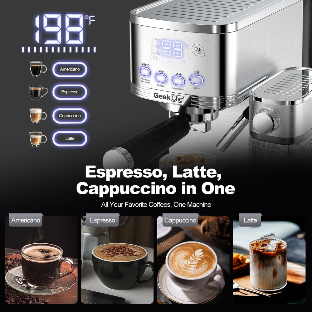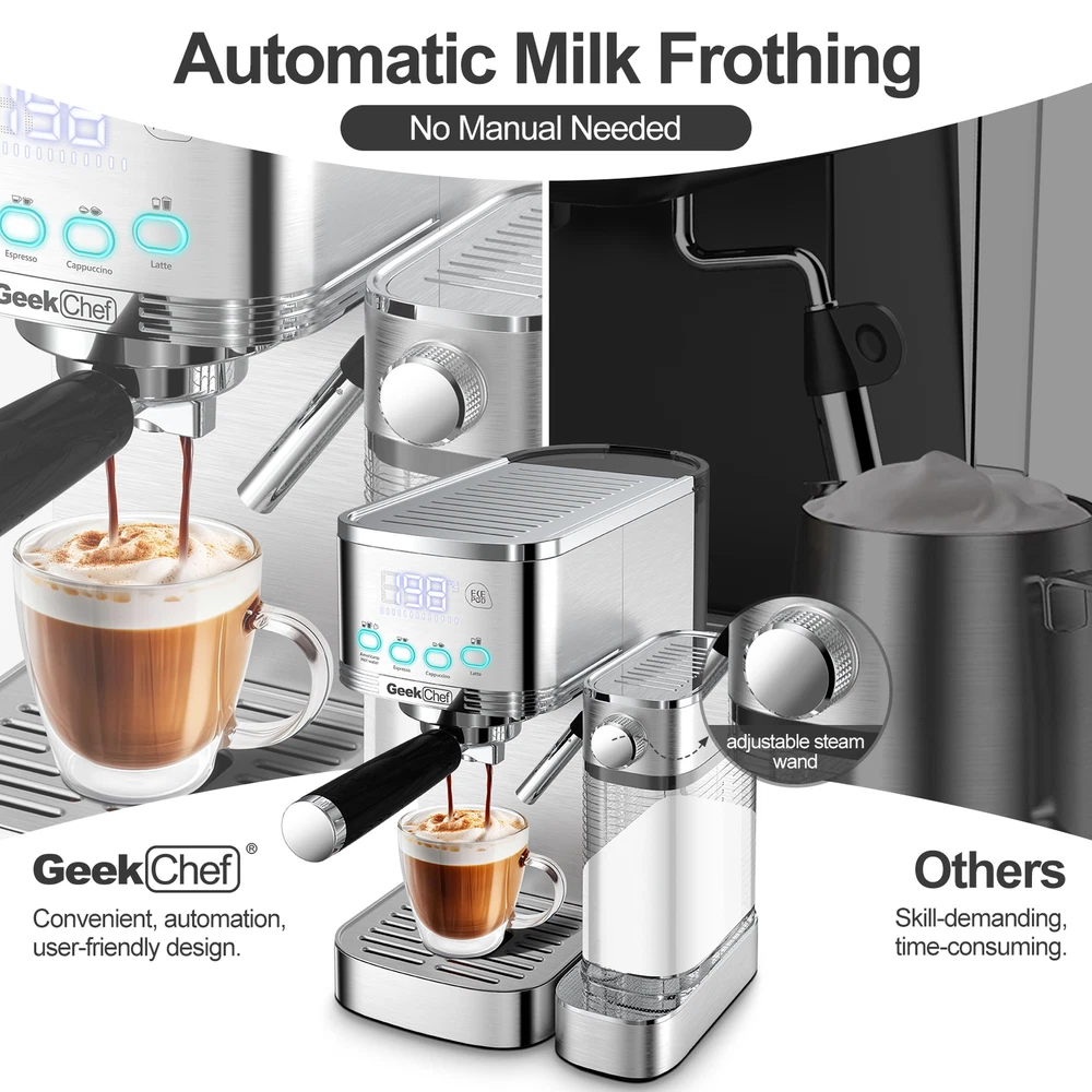 Geek Chef Espresso And Cappuccino Machine With Automatic Milk Frother,20Bar Espr