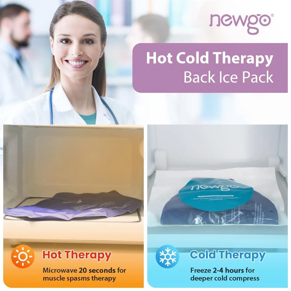 Lower Back Pain Relief - ice pack for back is specially designed to contour around the back shape and covers entire back and tail bone area. The back ice pack wrap provides the maximum pain relief from lower and upper back pain, soreness, sciatica nerve pain, spinal injuries, herniated disc, pulled muscle. Contain 2 Cooling Packs - Comes with 1 waist belt and 2 durable ice packs for alternative use to extend the warm or ice time, or one for the hot and one for the cold.Enjoy continuous effective relief and faster recovery from back pain or discomfort. One Size Fits Most - The back ice pack with 2 long adjustable velcro straps which supports up to 46" waist circumference, easily wraps and secures around a wide range of body sizes and shapes, and easy to find a steady compression fit & the needed relief. Great for people who are with chronic back pain, post back surgery, after gardening or household work for back symptom pain relief. Remain Flexible When Frozen - The flexible cooling area is filled with medical grade lower freezing point(-13℉) gel stays pliable when frozen and comfortably mold to back area.Simply freeze the ice pack for 2-4 hours for deeper cold compress, or heat 20 seconds in microwave for muscle spasms therapy. Versatile - Our back ice pack with strong nylon lining prevents leaks can be applied to relieve various pain of different body parts such as back, hip, torso, upper thigh. You can also use the wrap as a brace to help position yourself since bending, lifting, or twisting is not allowed after back surgery.
