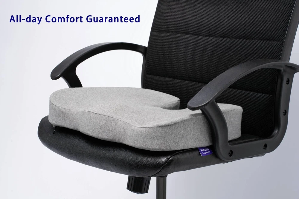 The Gel Infused Seat Cushion, a must-have for your office chair, wheelchair, or car seat. Experience optimal comfort and support during your workday with this premium cushion. Designed for versatility, it can be easily interchanged between different seats, whether it's a rolling executive chair or a traditional desk chair. The Seat Cushion is perfect for both home and office use, ensuring that you can stay productive and comfortable wherever you are. The gel-infused technology provides a cooling sensation, reducing any discomfort caused by sitting for long periods. Crafted with your comfort in mind, this cushion helps alleviate pressure points and promotes proper posture. It's like sitting on a cloud! The high-quality materials used ensure durability, so you can enjoy the benefits of this cushion for years to come. Whether you're working on important projects, attending meetings, or simply relaxing, the Seat Cushion will provide the support you need. Enhanced Comfort: Experience the ultimate comfort with our gel-infused memory foam seat cushion. Its strategically designed coccyx cutout allows your tailbone to float, ensuring even those with sacrum sensitivities can sit for extended periods without discomfort. Say goodbye to back pain and enjoy luxurious seating wherever you go! Breathable Mesh Cover: The cushion is covered in a breathable mesh material that promotes airflow, preventing sweat and heat build-up. The removable cover is also machine washable, making it easy to keep your seat cushion clean and fresh. Ergonomic Design: With its carefully crafted ergonomic design, our seat cushion ensures optimal support and promotes healthy posture. It helps align your spine, reducing strain and allowing you to sit for longer periods without discomfort. Premium quality materials: We use only the finest materials to create our gel seat cushion. The 30 percent higher amount of premium memory foam ensures durability and long-lasting support. You can rely on the cushion to maintain its shape and provide consistent comfort day after day. Temperature-Sensitive Design: Designed with your comfort in mind, our gel seat cushion is sensitive to temperature fluctuations. In colder weather, some users have mentioned that the cushion may become firm and hard. However, once the material warms up, it quickly returns to its soft and supportive state.