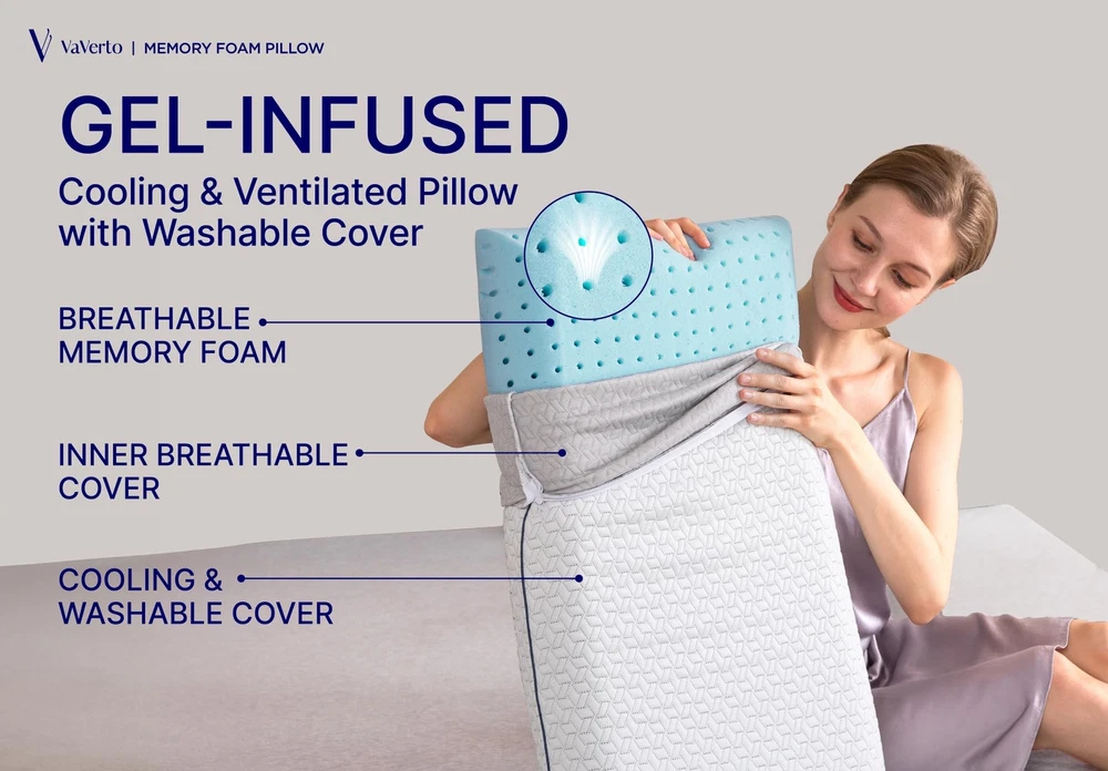 Orthopedic Support: Our Set of 2 gel memory foam pillow provides contoured orthopedic support, ideal for pillows for neck and shoulder pain relief. This memory foam pillow ensures proper spinal alignment for back, side, and stomach sleepers Cooling Technology: Experience a cool pillow sensation with our cooling gel pillow. The memory foam cooling pillow is infused with cooling gel, making it the ideal choice for hot sleepers. Stay comfortable all night with this premium foam pillow Luxury Comfort: This plush gel memory foam pillow combines luxury and comfort, fitting perfectly into any home, hotel, or hospital setting. The Plush pillow ensures lasting support, making it the High quality pillow for a restful sleep Viscose Made From Bamboo Cover: Our cooling memory foam pillow comes with a hypoallergenic, breathable cover. This cooling pillow cover enhances airflow, making it an ideal cooling memory foam pillow for a fresh sleeping experience Versatile Sleeping Positions: Designed for versatile sleeping positions, this memory foam pillow is perfect for back, side, and stomach sleepers. The firm pillow ensures consistent support, this pillow for those who need a firm memory foam pillow