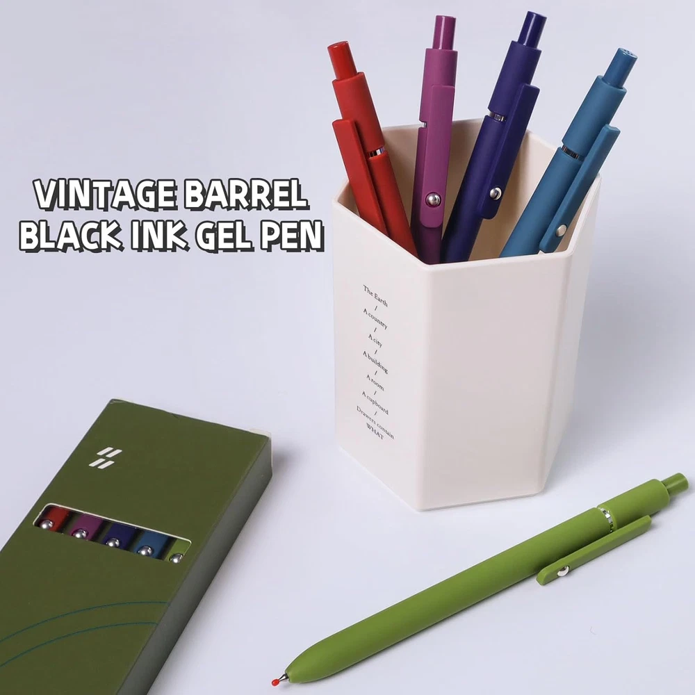 Super Soft Grip: Soft silicone features grip bring a super soft touch feeling which makes each gel pen easy and comfortable to hold 0.5mm Fine Point: 0.5mm black ink pens fine point smooth writing pens, writes small and clear. You can use them for all your writing, they don't run through the paper, and of course, no smear or bleeding Classic Design: Each writing pen has a durable clip that can let you fasten it to a notebook, binder, or pocket easily Perfect Gifts: They are cute school supplies accessories for men women kids in the classroom, school and office. It’s a good idea for a classroom prize for students, an art party gift, a birthday present and a Christmas gift Package Included: These journal pens included 10 pcs of high-end Vintage gel pens. They are great retractable pens for aesthetic school supplies, office supplies, journaling, note taking and planning Product Description