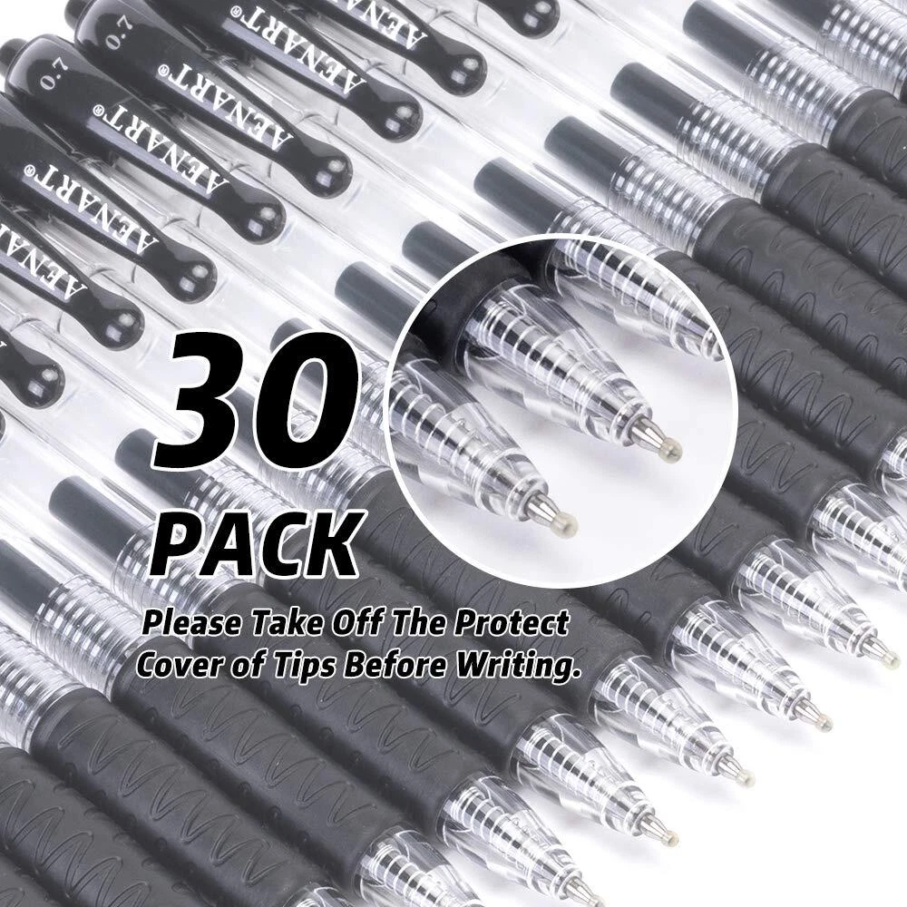 Gel Pens, 30 Pack Black Gel Pen Fine Point, Retractable Gel Ink Rollerball Pens for Smooth Writing (0.7mm) Back to School Supplies Long Lasting Ink: Large ink tube is filled with more ink for our gel pens, which makes our black pens long lasting. Quick drying makes you stay away from smearing, and left handed people can easily use it. Comfortable Design: Premium rubber grips make each gel pen easy to hold and let you work without fatigue. Also durable Pocket clip is convenient and easy to carry with your notebook. Unlimited Uses: 0.7mm Fine Point, Retractable Gel Ink Pens are ideal for school, office and home use. Flow smoothly and evenly in every piece pens. They are suitable for writing notes, bullet journal, dairy drawing and more. Value for Money: We stand behind the quality and price of our products. You will find more pens but less cost at . Compare the writing experience of our gel pens on paper with other named brands. Environmentally Friendly: All of our pens are made from Environmentally & Friendly Materials. Non-Toxic & Acid Free. We hope you are delighted with your purchase. If not, We will do our best to make things right after you contacted us for help. has been working hard to give customers high quality products and pleasant shopping experience. To ensure the best performance, we produce the products using high-quality raw materials with standard producing technique under strict quality management. Obsessed with Office Suppliers? We are too! Get ready to write the most elegant to do lists, you and that legal pad! At work, home, or anywhere, you need a pen that keeps working even longer than you do. From taking notes to writing your novel by hand, Our gel pens keep the ink and your ideas flowing. Shipping We offer FREE shipping on all orders! We ship within Three business days of payment, usually sooner. We use a selection of shipping services such as UPS, FedEx, USPS etc. We only ship to the lower 48 states, no APO/FPO addresses or PO Boxes allowed. Local pickups and combined shipping options are not provided at this time. Return You can return a product for up to 30 days from the date you purchased it. Any product you return must be in the same condition you received it and in the original packaging. Please keep the receipt. Payment We accept payment by any of the following methods: PayPal Please pay as soon as possible after winning an auction, as that will allow us to post your item to you sooner! Feedback Customer satisfaction is very important to us. If you have any problem with your order, please contact us and we will do our best to make you satisfied. Contact Us If you have any queries, please contact us via ebay. We usually respond within 24 hours on weekdays. Please visit our eBay store to check out other items for sale! Thank you for shopping at our store.