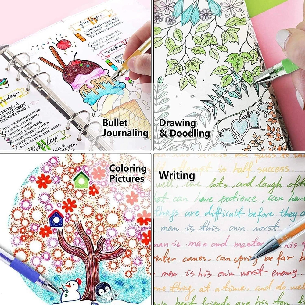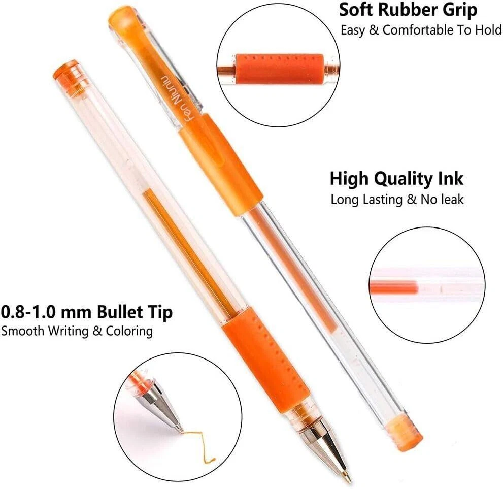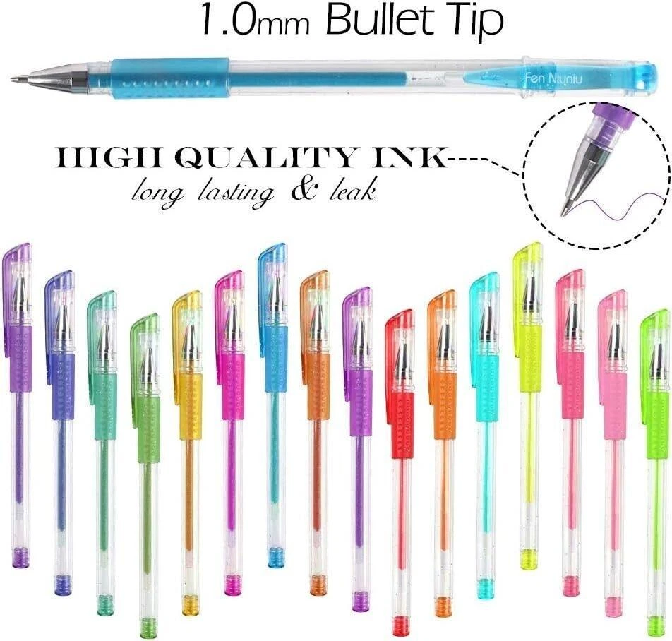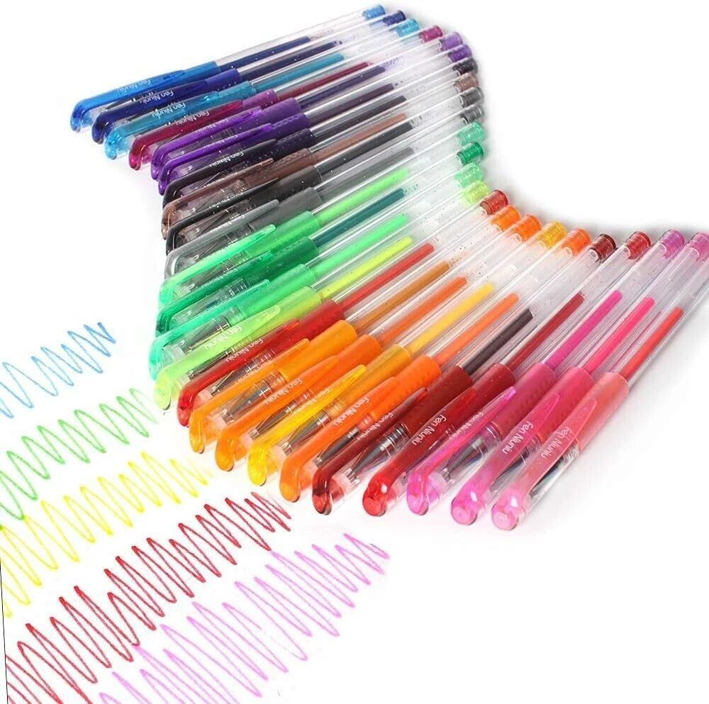CONTACT US DIRECTLY FOR FREE & PREPAID RETURNS Gel Pens 48 Set Colored Glitter for Coloring Books Drawing Art Marker Kids Adult 【 contains 24 unique colored pens and complete 24 ink refills for every color pen & five different ink types 】these gel pen markers are no duplicate colors and shades. aside from different colors, it is possible to divide the pens in this set into five different ink types. There are neon colors, pastels, metallic, glitter and rainbow swirls. You will have an almost limitless amount of color combinations, so you can give all your art projects your personal creative touches 【Have a lot more ink compared to other glitter gel ink pens】This colored markers have significantly more ink in their barrels. There are at least 40% more in these pens compared to other glitter gel pen sets. So you do not have to worry about running out of ink quickly. You can write a dozen or so pages using one pen, and it will still not run out of ink.and you will also receive 24 different types of colored ink refills for every color pen. It takes absolutely no effort to write with these pens 【Uses water-based and non-toxic inks】These sparkle glitter pens are great gifts for kids or beginner. The inks are all water-based and are non-toxic. If your kids accidentally write on their hands, soap and water will take care of it. And if they get ink on their clothes, a bit of oxy cleaner will get rid of it before it gets a chance to stain. 【Vibrant colors and glitter effects】The inks are vibrant and and the glitters will still be lustrous, they all contrast well on any color surface. you can easily see how much they shine and glimmer. especially on black. In addition, the glitters never dull even after a long time has passed. The ballpoint tips apply the ink evenly on the paper. There is no skipping or ghosting of the ink. This is all thanks to the high-quality ballpoint tips. 【quick-drying inks won’t bleed through the page & write incredibly smoothly】the ink has a rather thick consistency and dries quickly. This prevents it from bleeding through the paper. they are among your ideal writing implements.These glitter pens for coloring all come with ballpoint tips, these pens create lines that are between 0.8mm to 1.0mm, which allows the colors of the inks to show much clearer, thick and uniform. REVIEWS The product came very well packaged. I'm very happy. thank you for everything. Seller strongly recommended. This is great! I definitely recommend! Product looks amazing Delivery was fast. Excellent seller, great communication. I advise everyone